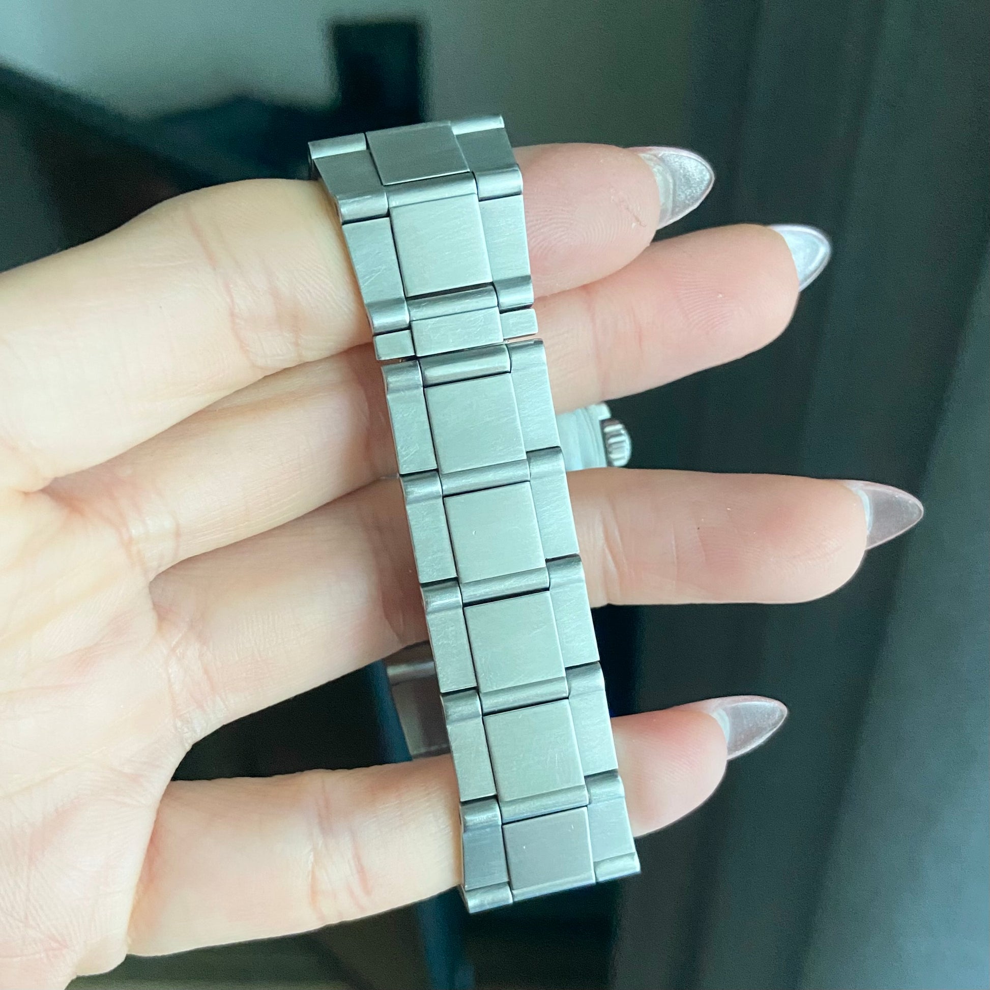 Wrist size: Adjustable fit up to 17.4cm (links can be removed for a smaller fit).