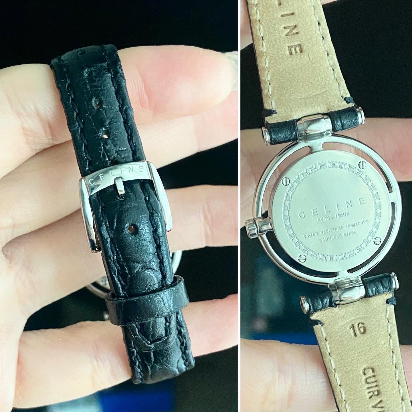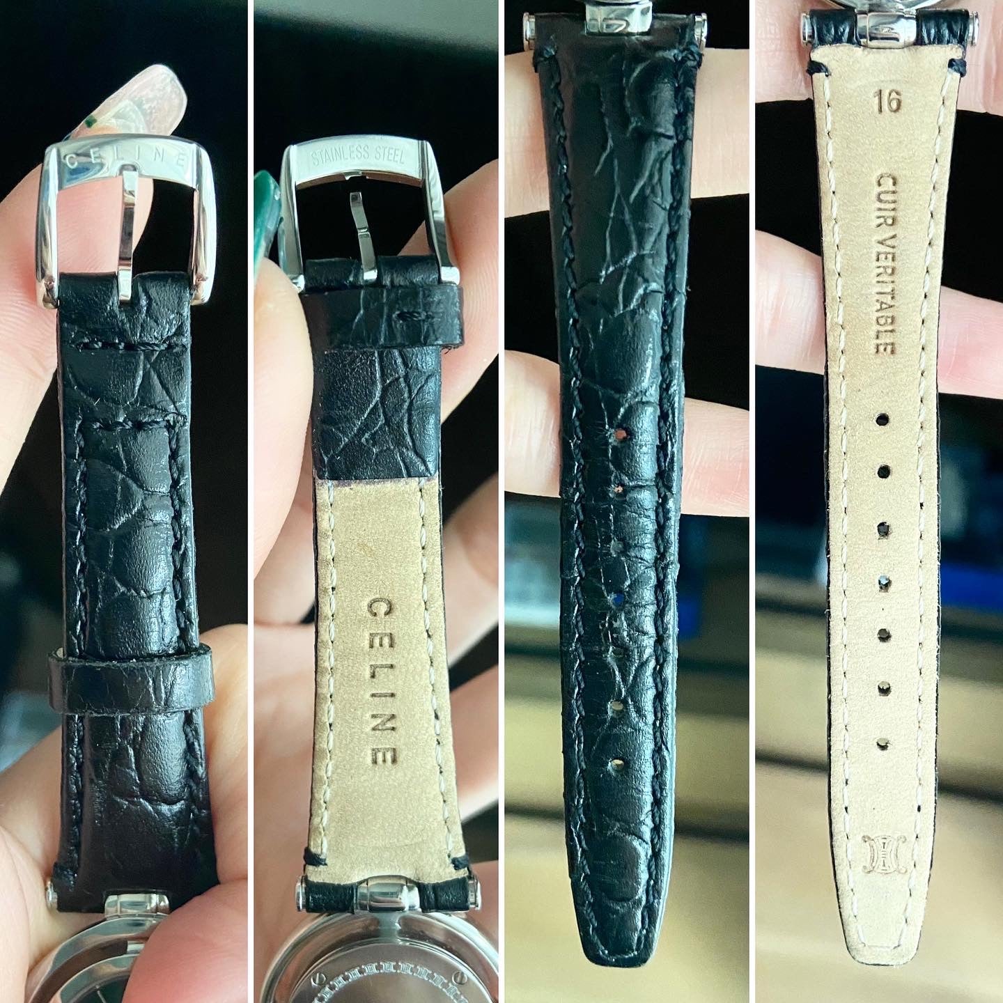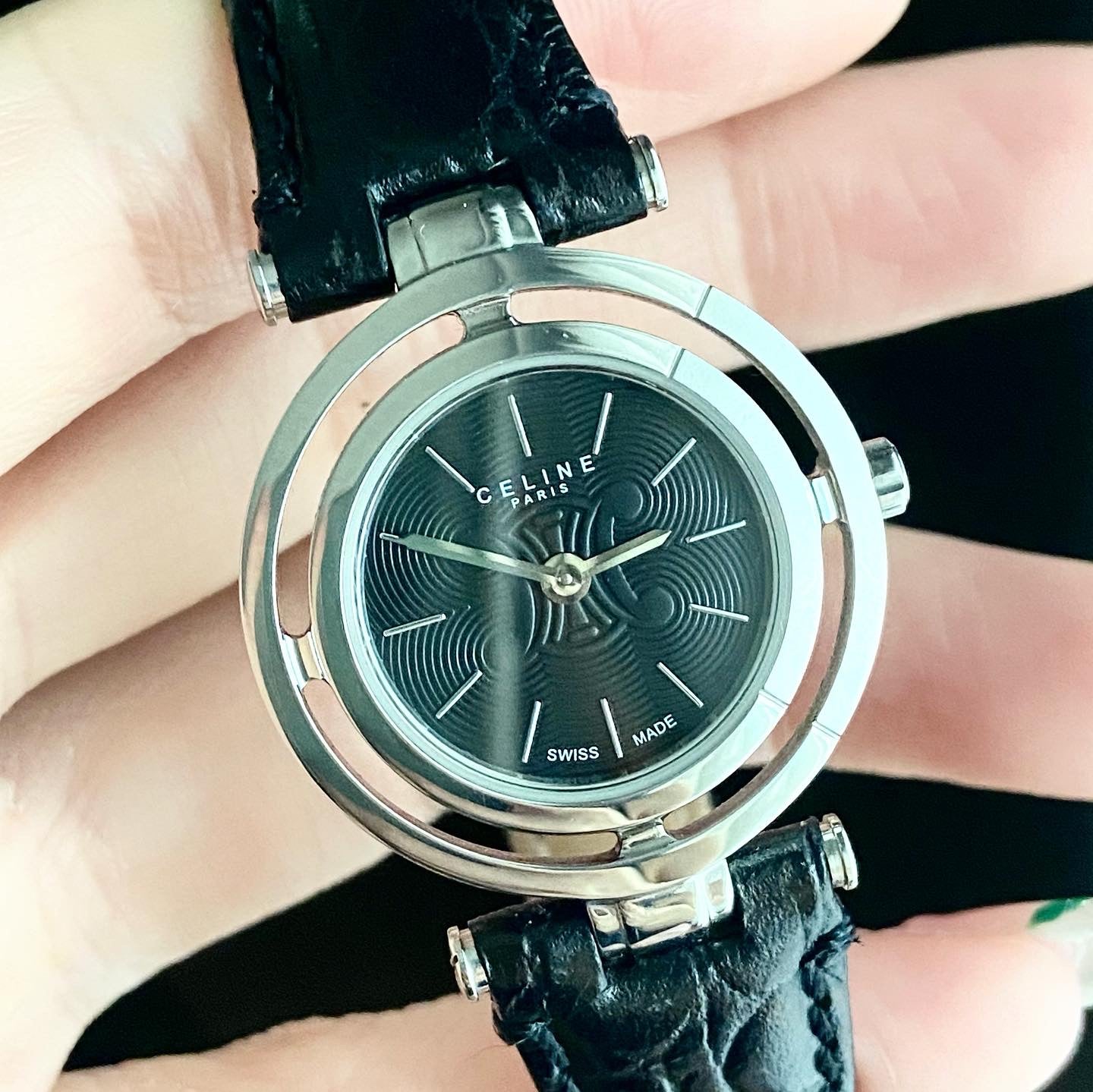 Dial: Black dial with texture, Celine Logo in the middle with 2 silver tone hands.