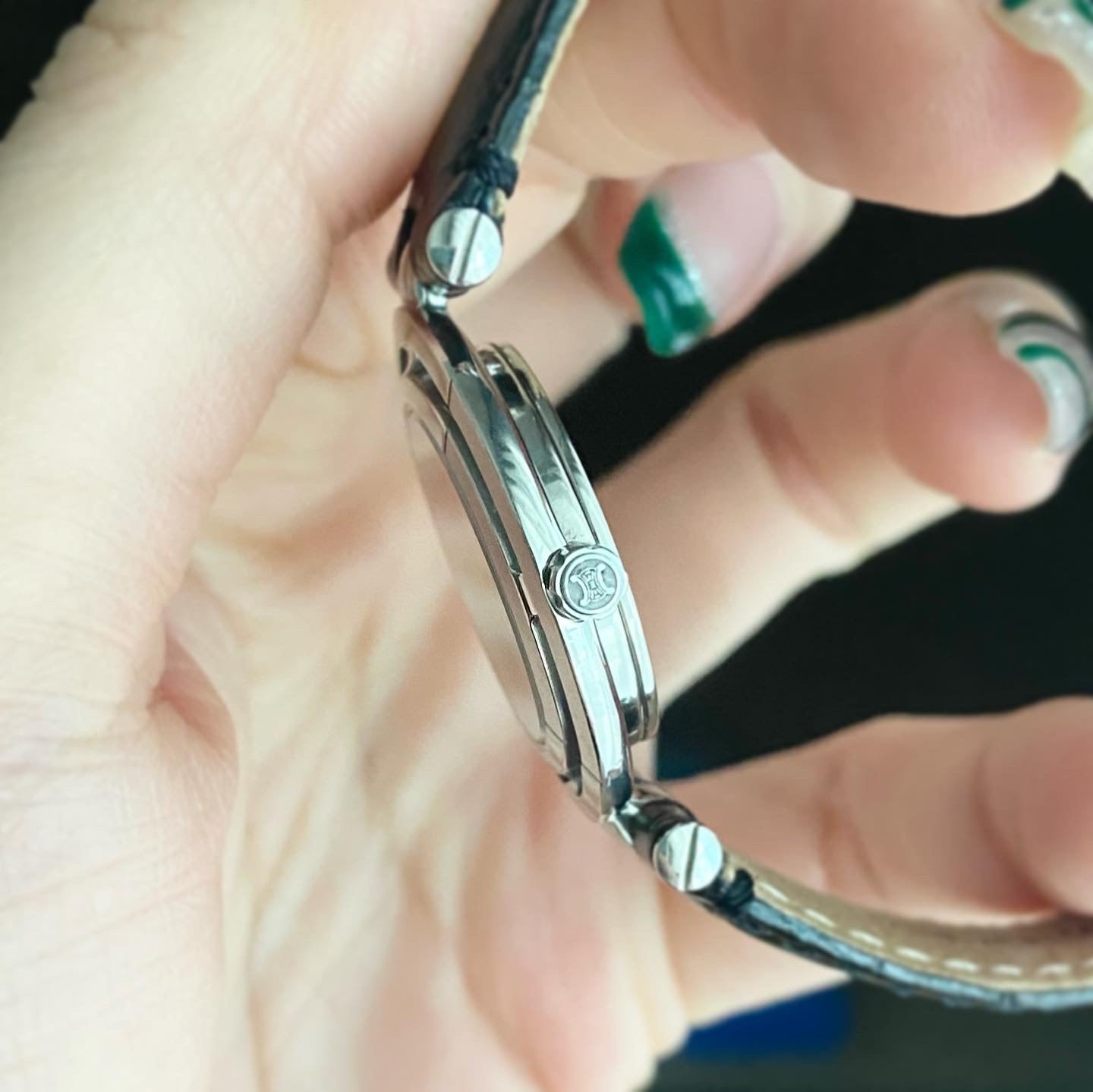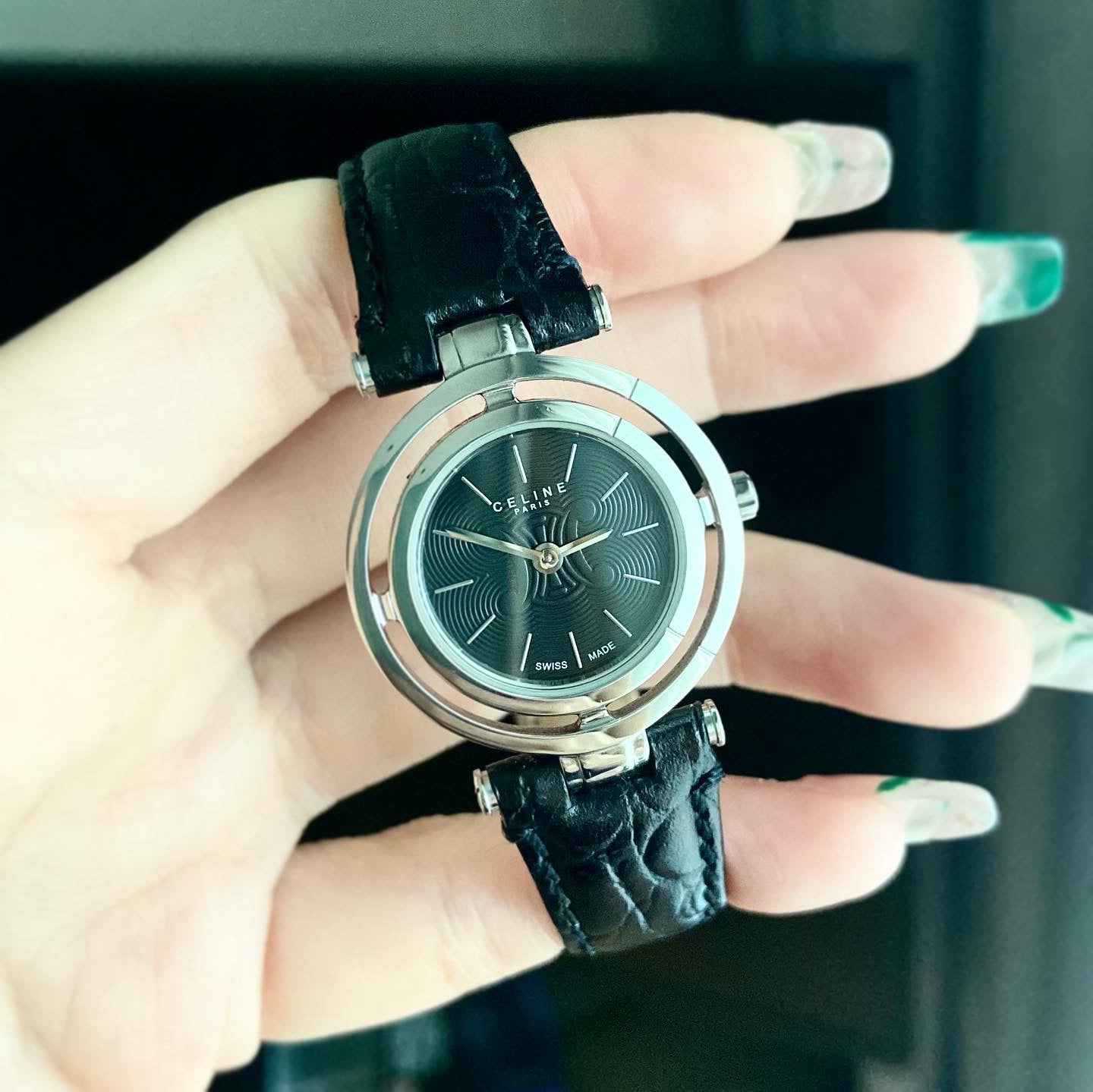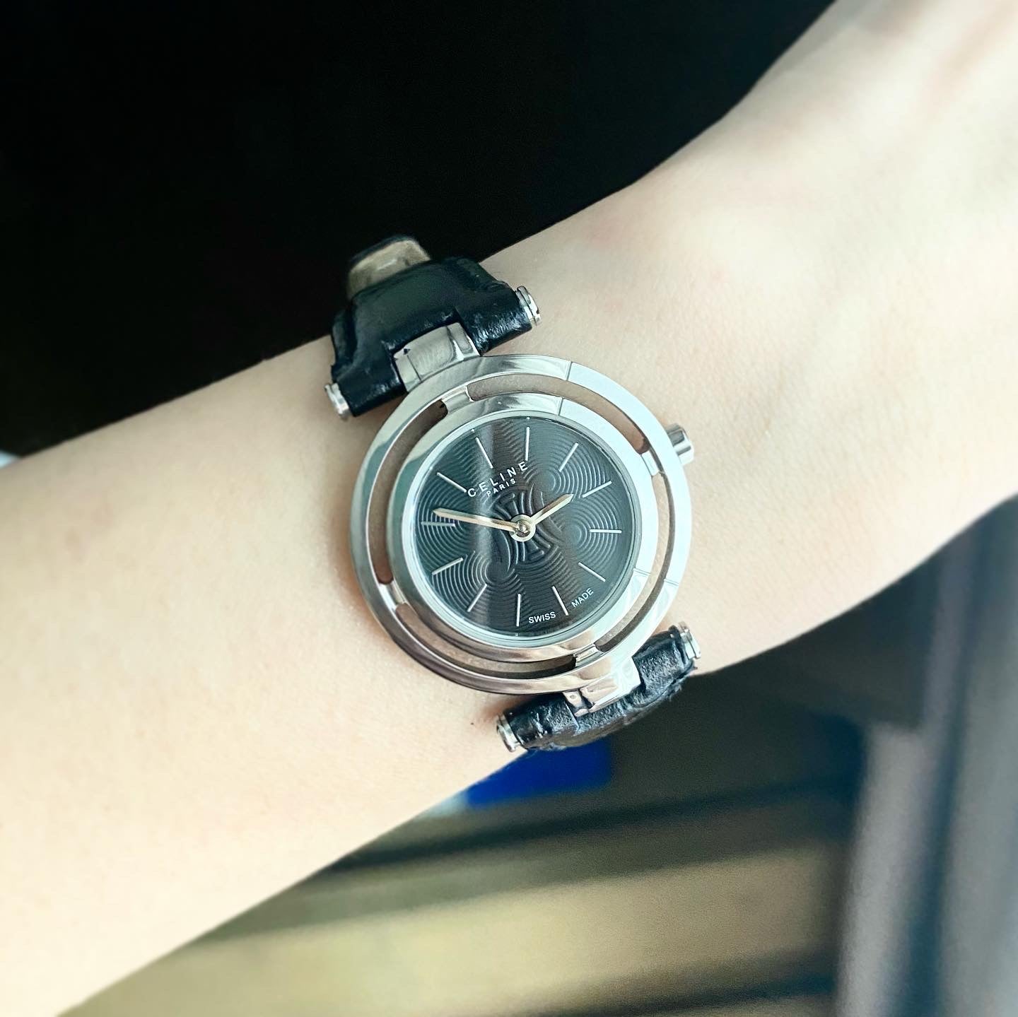 Dial: Black dial with texture, Celine Logo in the middle with 2 silver tone hands.