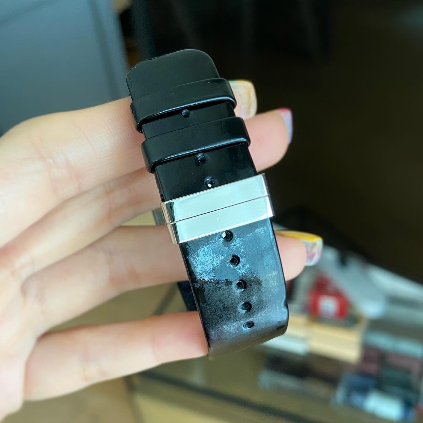 Strap material: Patent Leather.