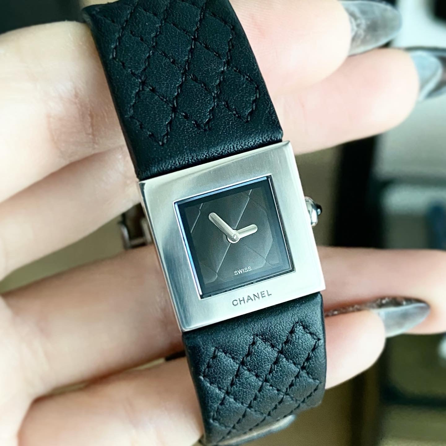 Dial: Black lacquered quilted dial with 2 silver tone hands