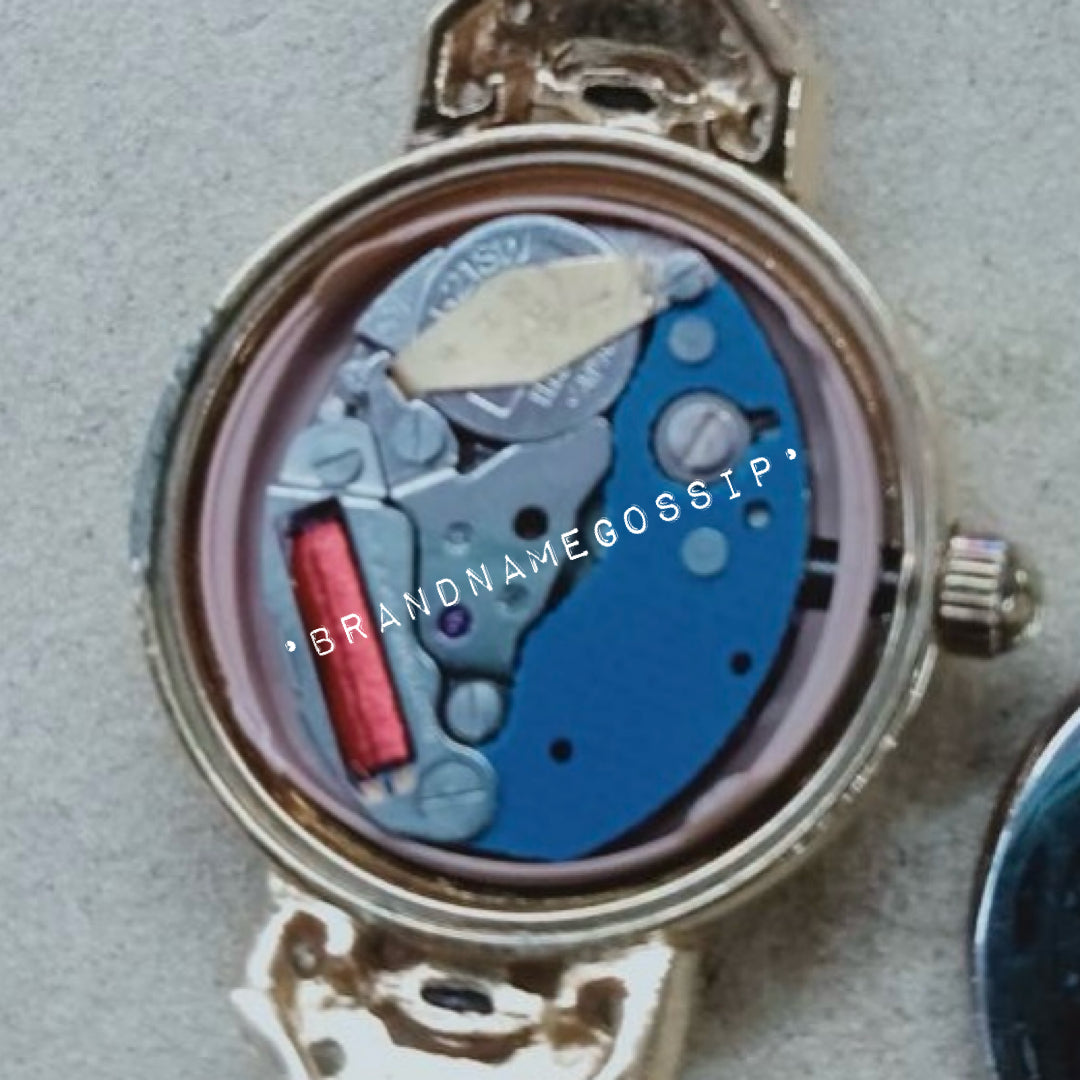 Dial: Brushed gold tone dial with 2 gold tone hands, and dot indices.