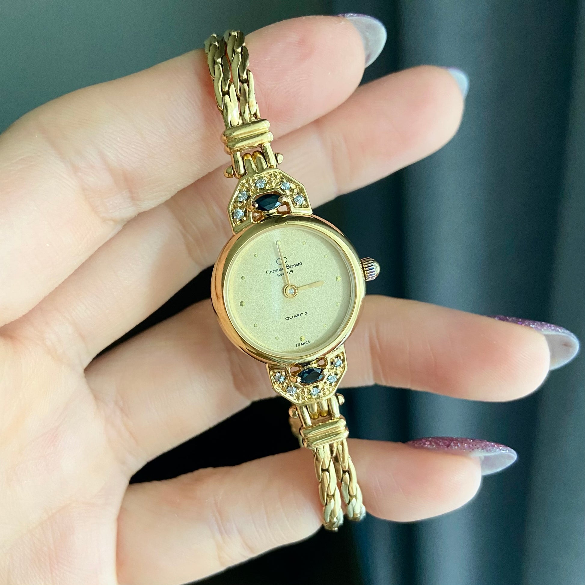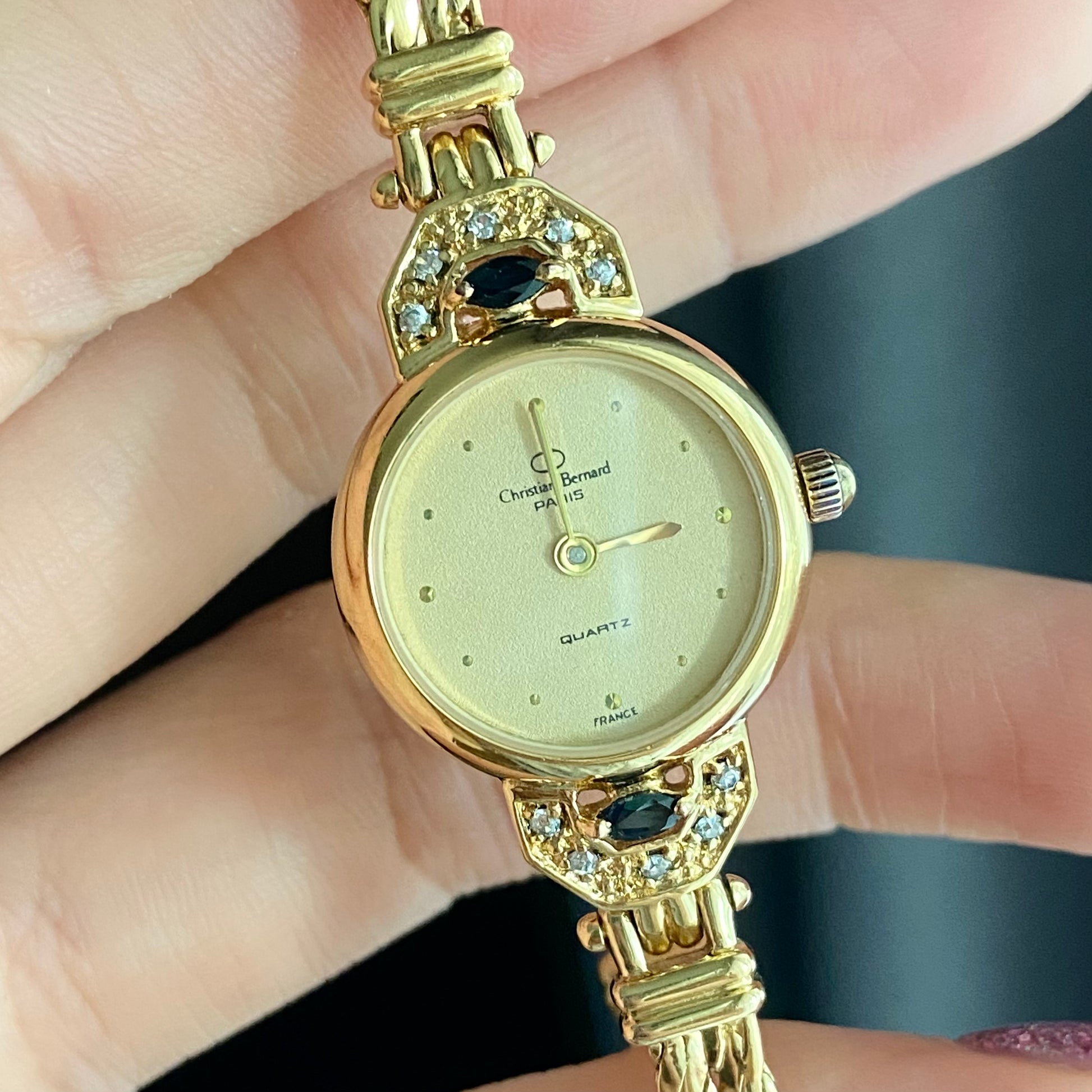 Expert authenticated Christian Bernard Vintage Black Onyx watch.