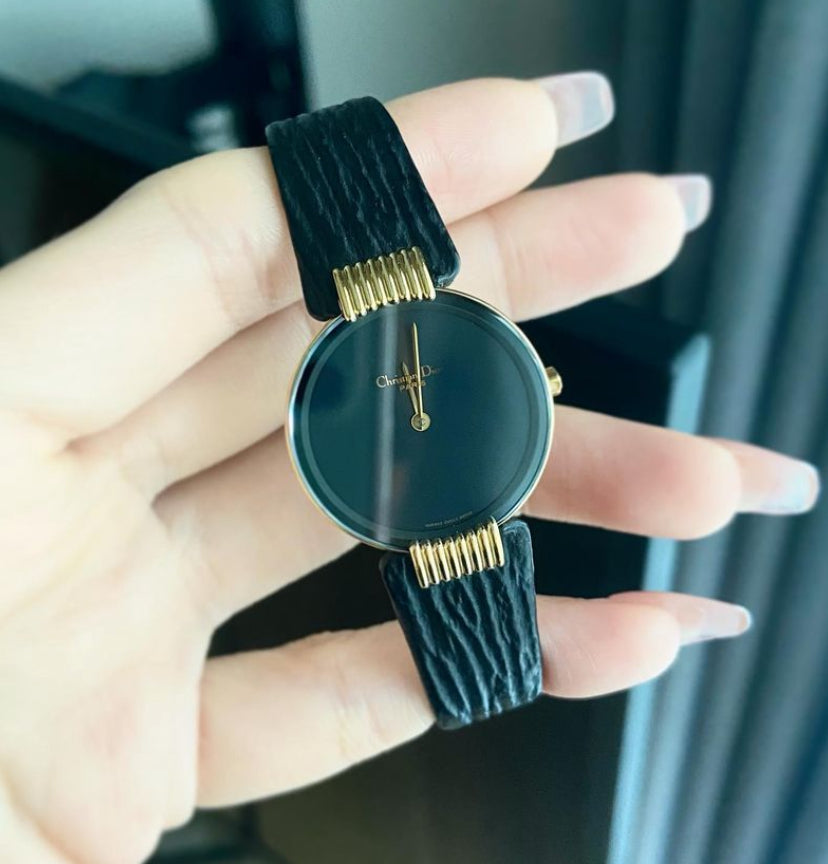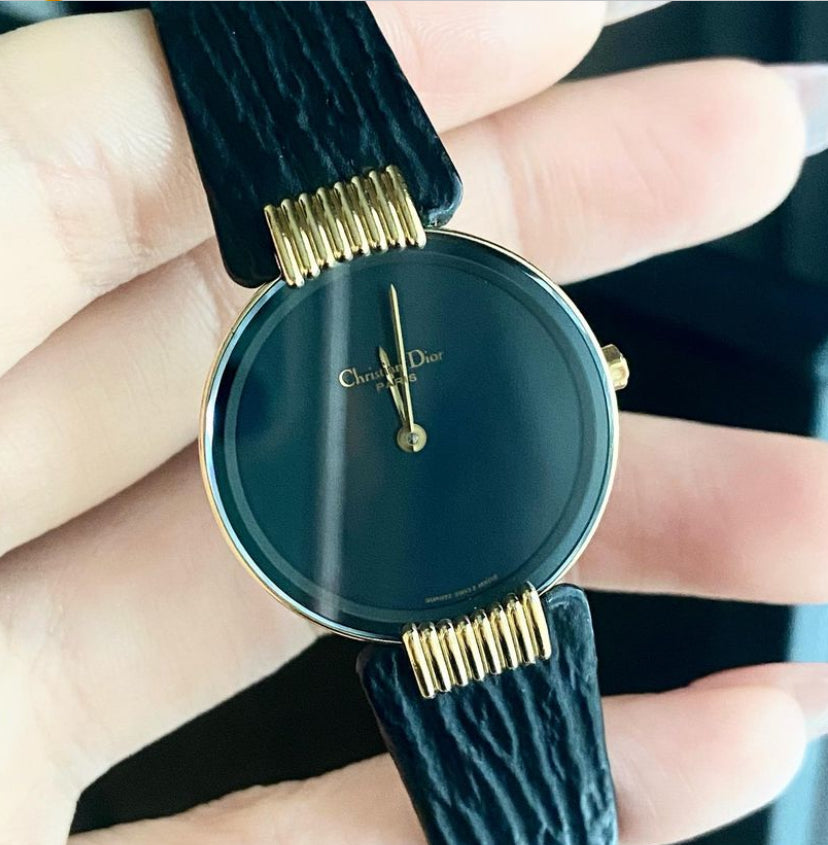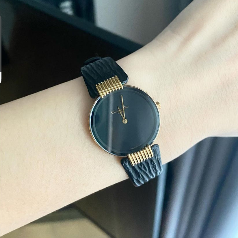 Dial: Matte black dial with 2 gold hands. Full crystal dial with golden marked of 'Christian Dior' under the crystal. Super beautiful. It's the signature of this model.
