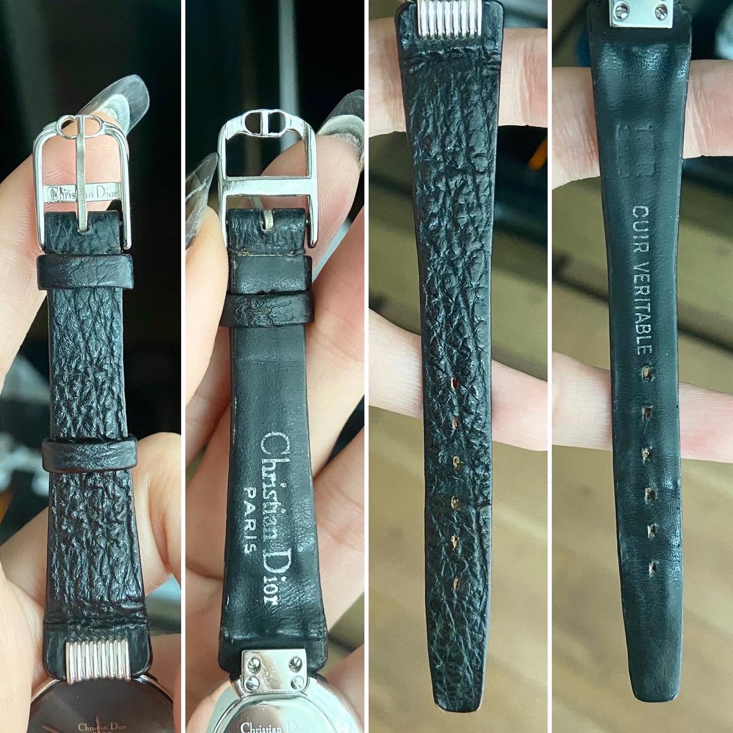 Dial: Matte black dial with 2 silver tone hands and a full crystal overlay marked with “Christian Dior” in gold beneath the crystal, embodying elegance and the signature style of this model.