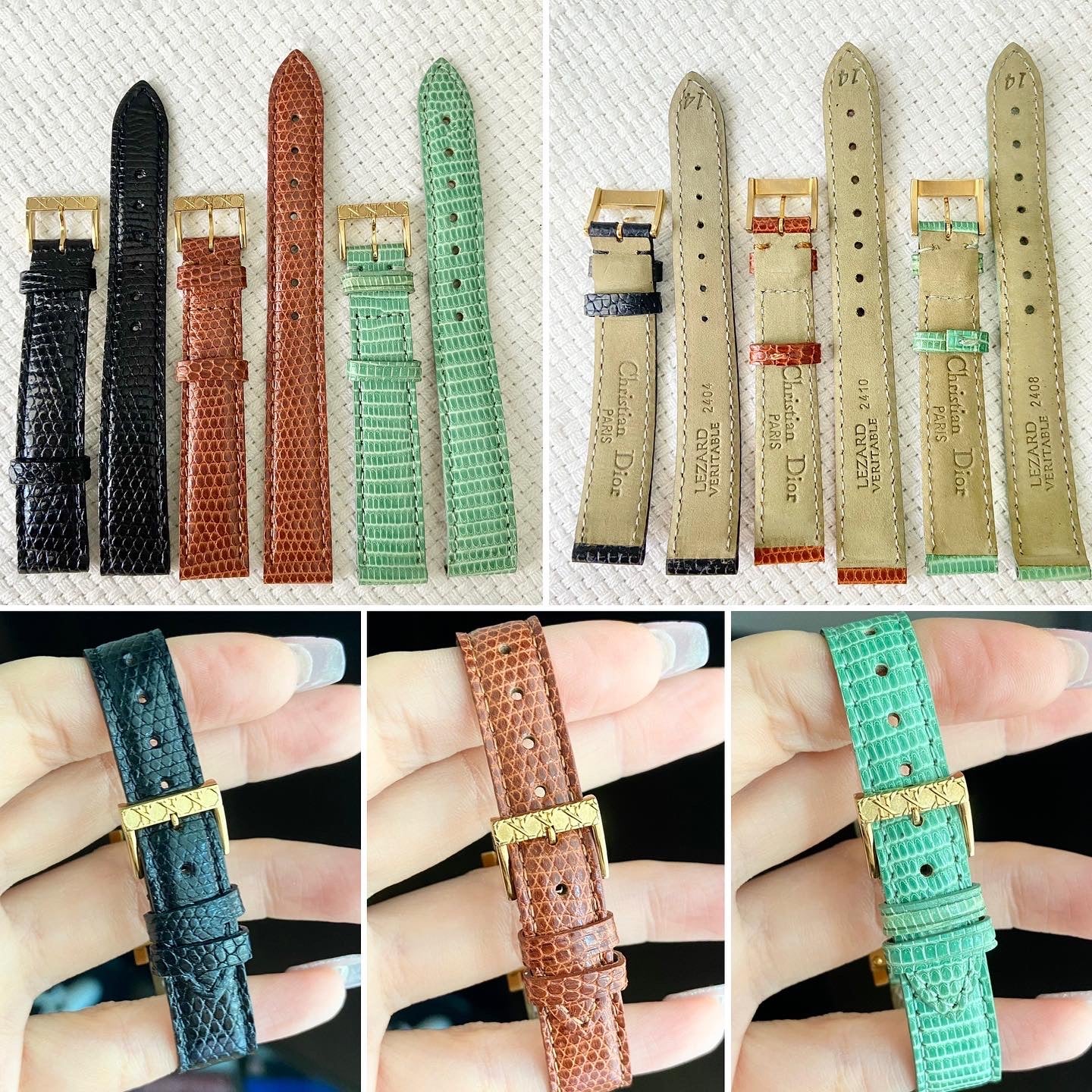 Strap: 3 new original lizard straps: black, brown, and light green.