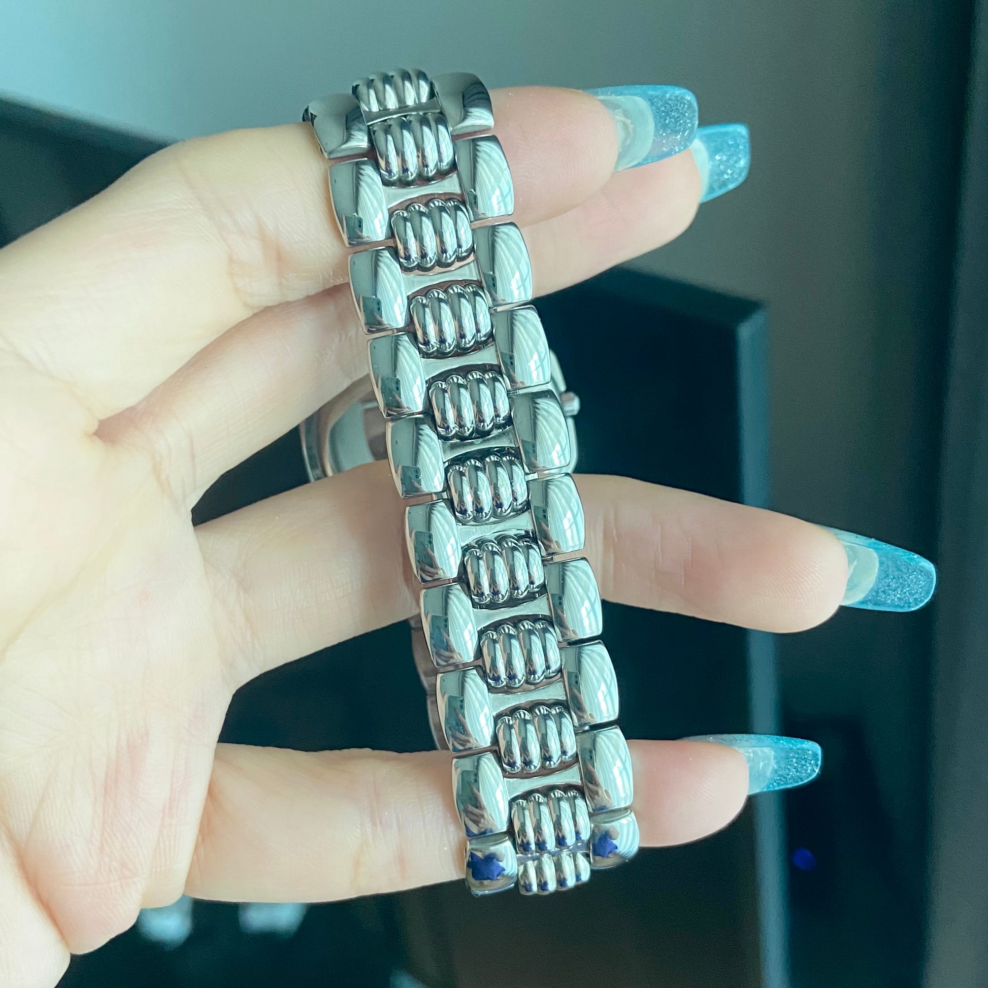 Wrist size: Adjustable up to 17.3cm. (links can be removed for a smaller fit).