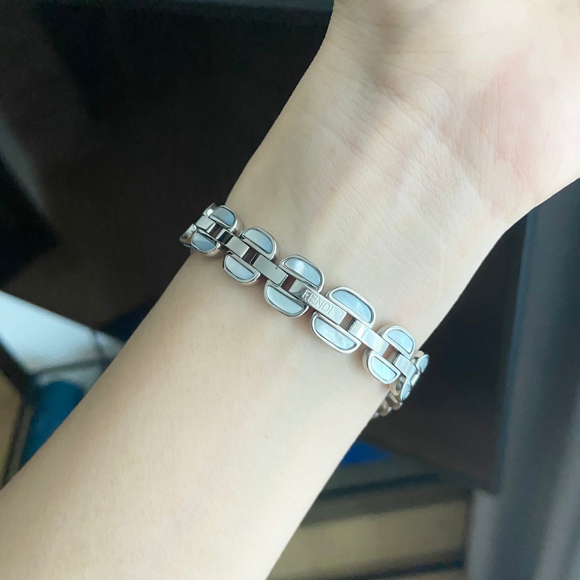 Bracelet material: Stainless steel with mother of pearl inlay.