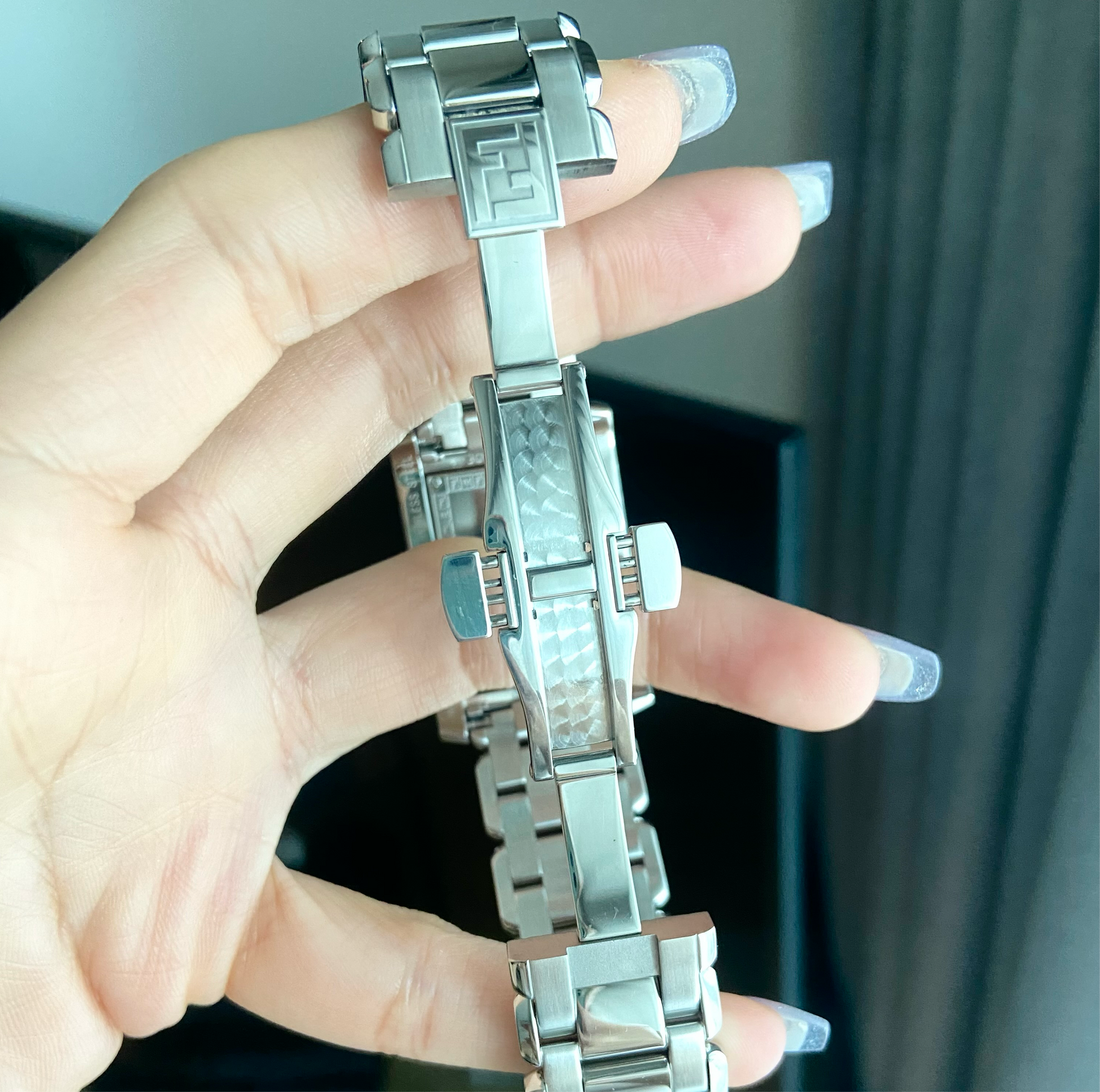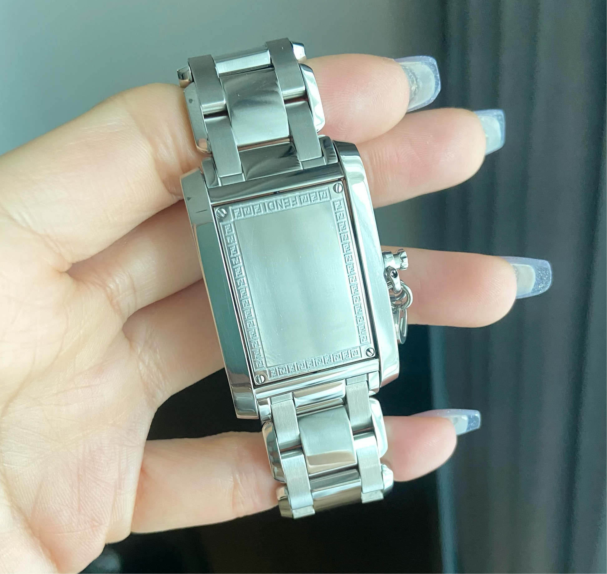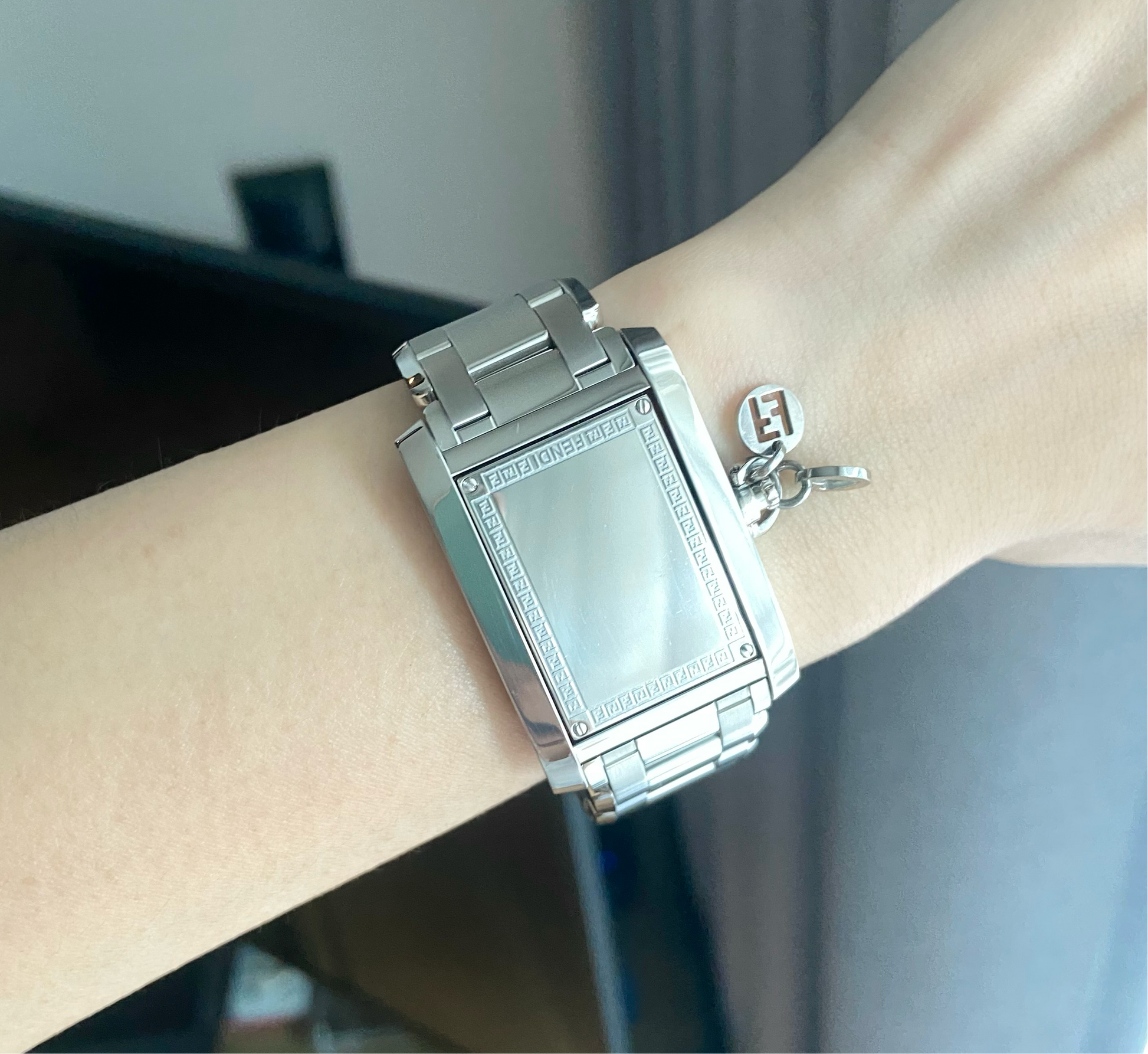 Case: Stainless steel with little charms crown (super cute). Flippable dial. On the back of the case FF line around the frame.