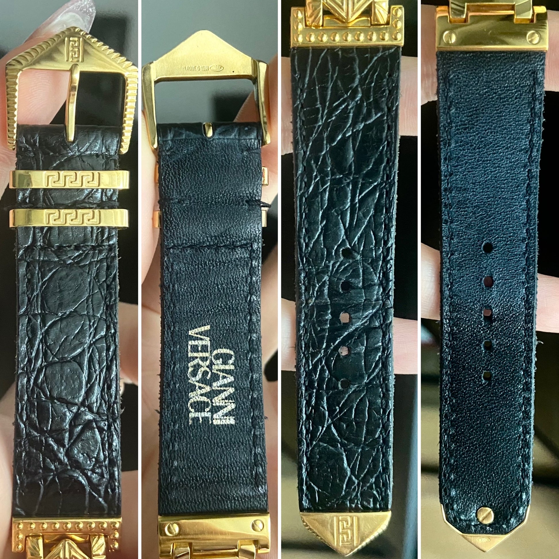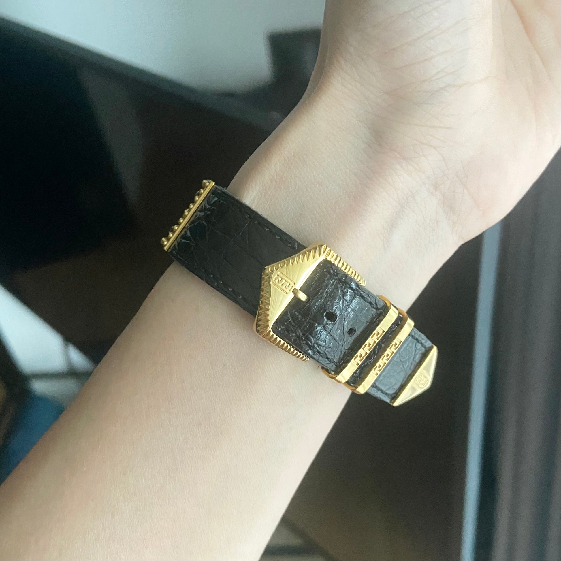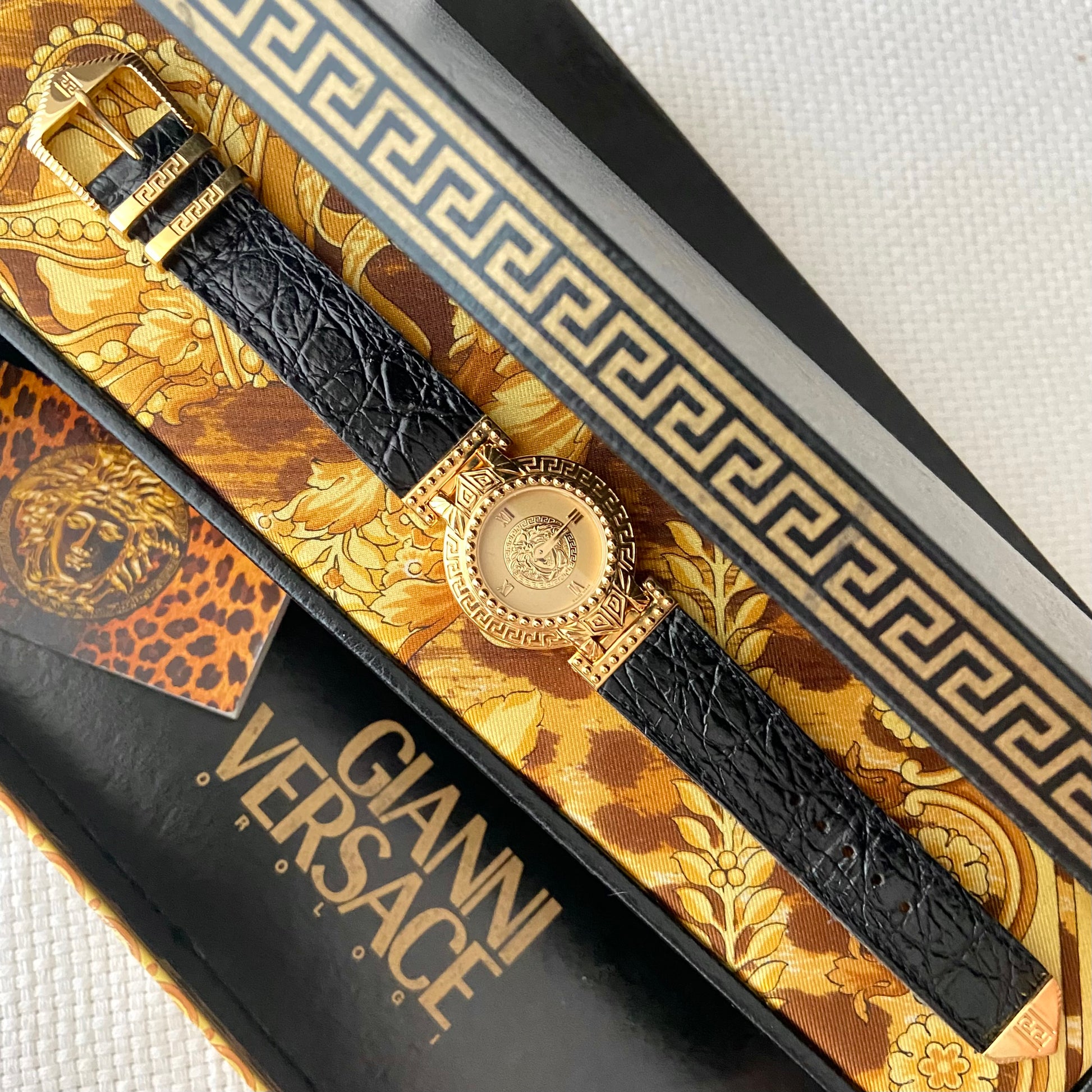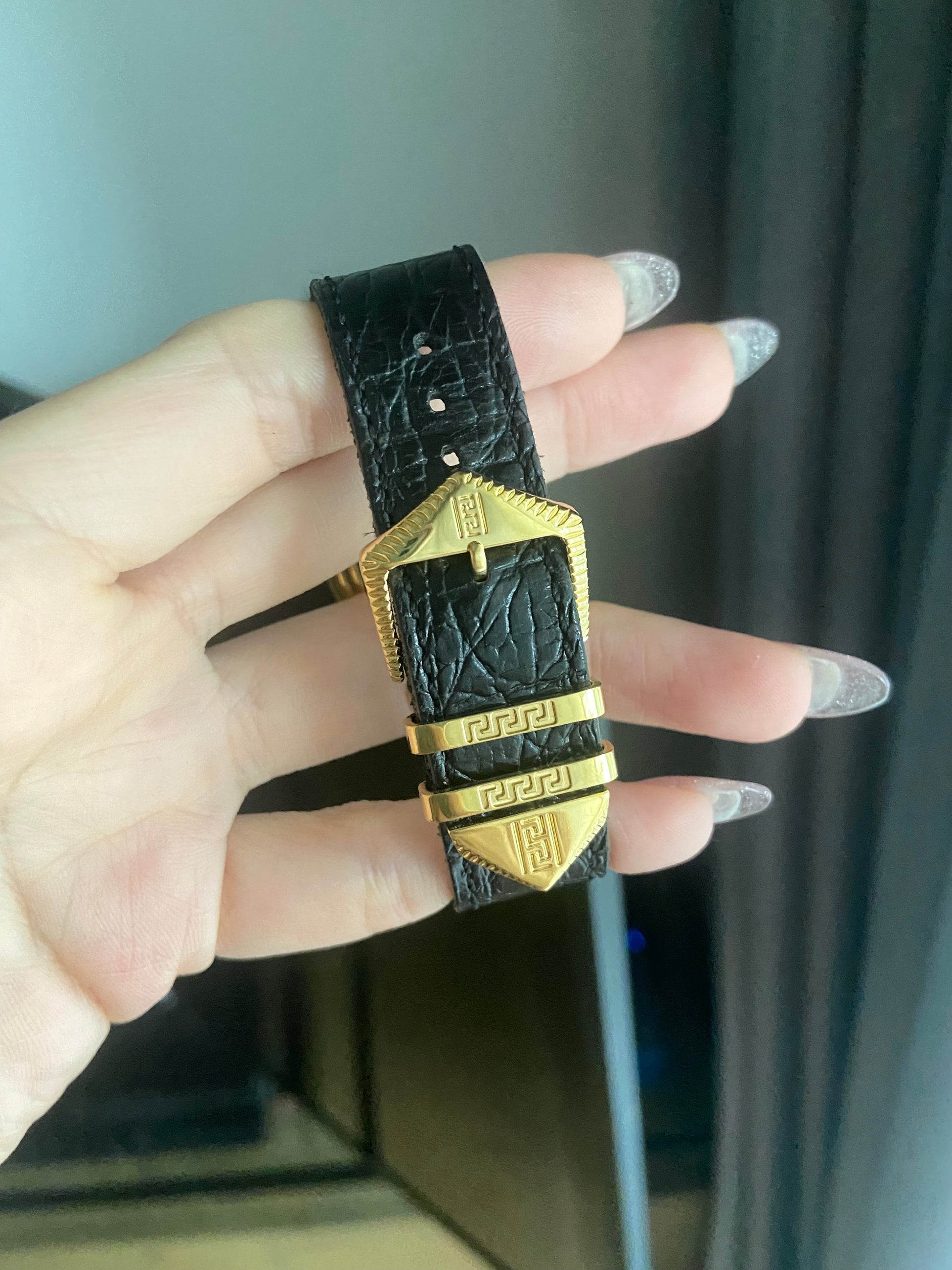 Case material: 18K Gold Plated 20M with Versace's signature pattern case.
