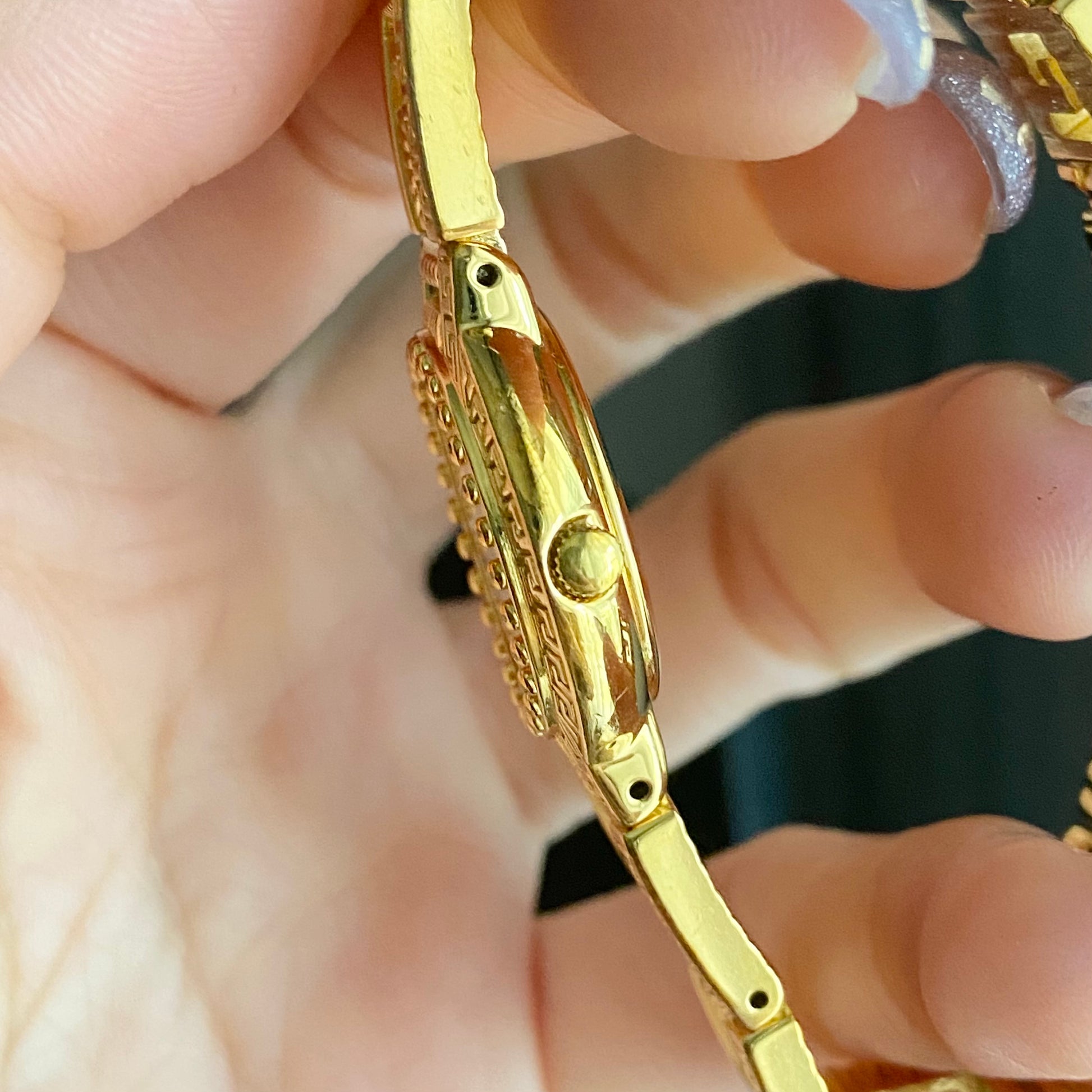 Case: 18K Gold Plated 20M with Versace's signature pattern case.