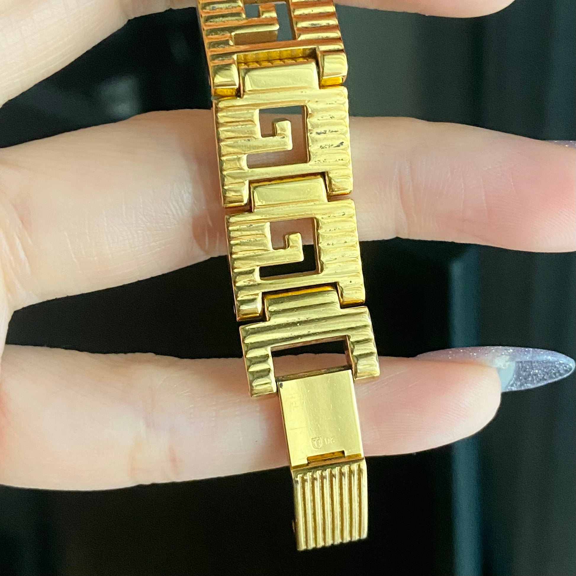 Bracelet: 18K Gold Plated 20M with Versace's signature pattern bracelet. It's so beautiful.