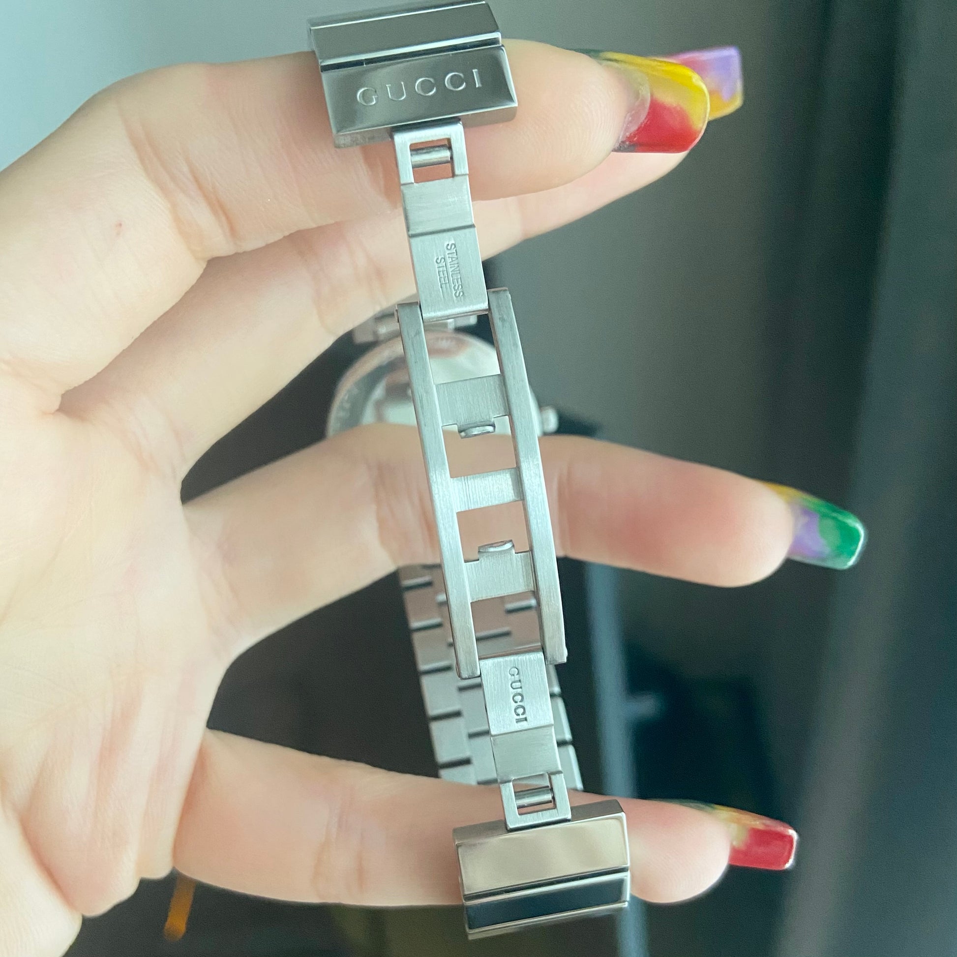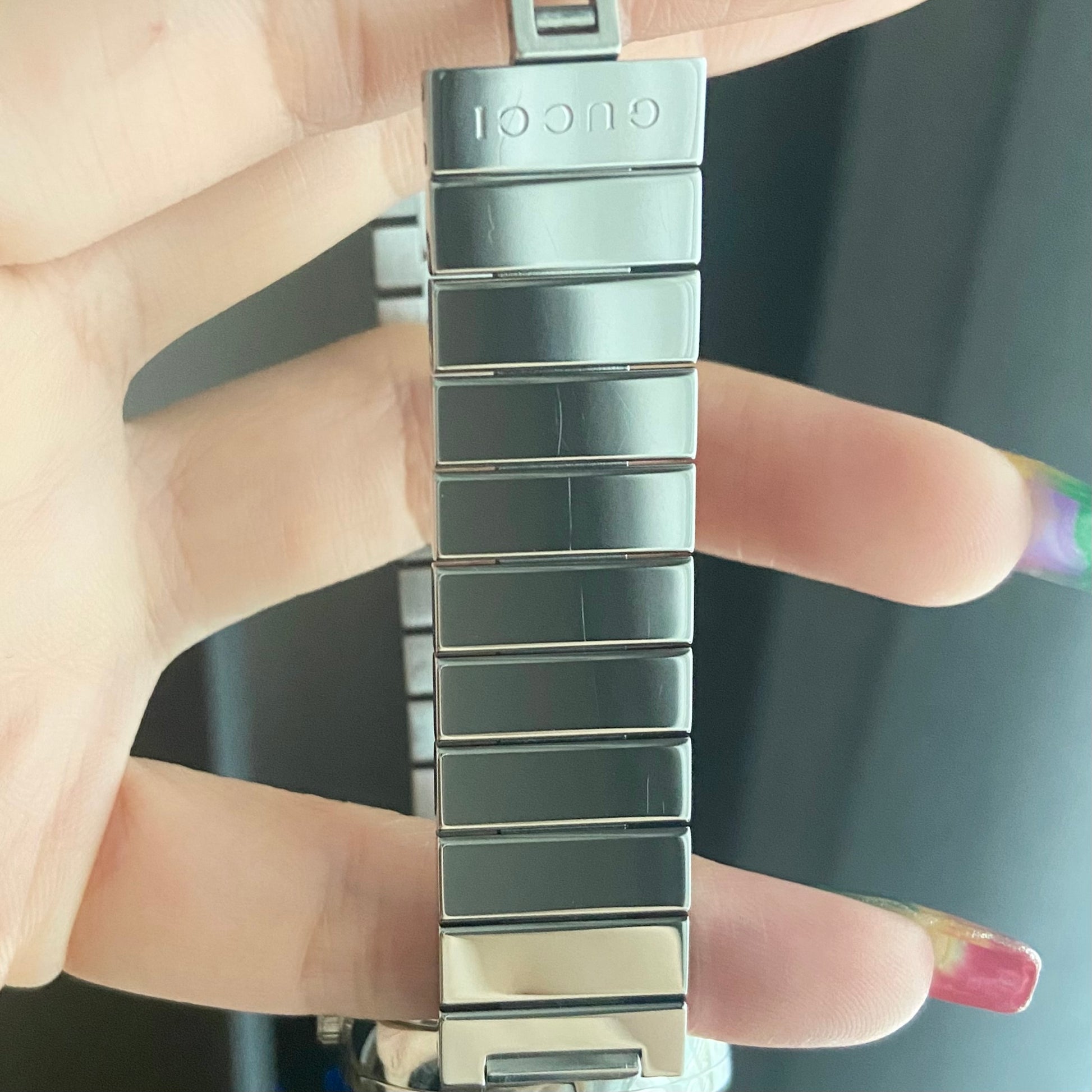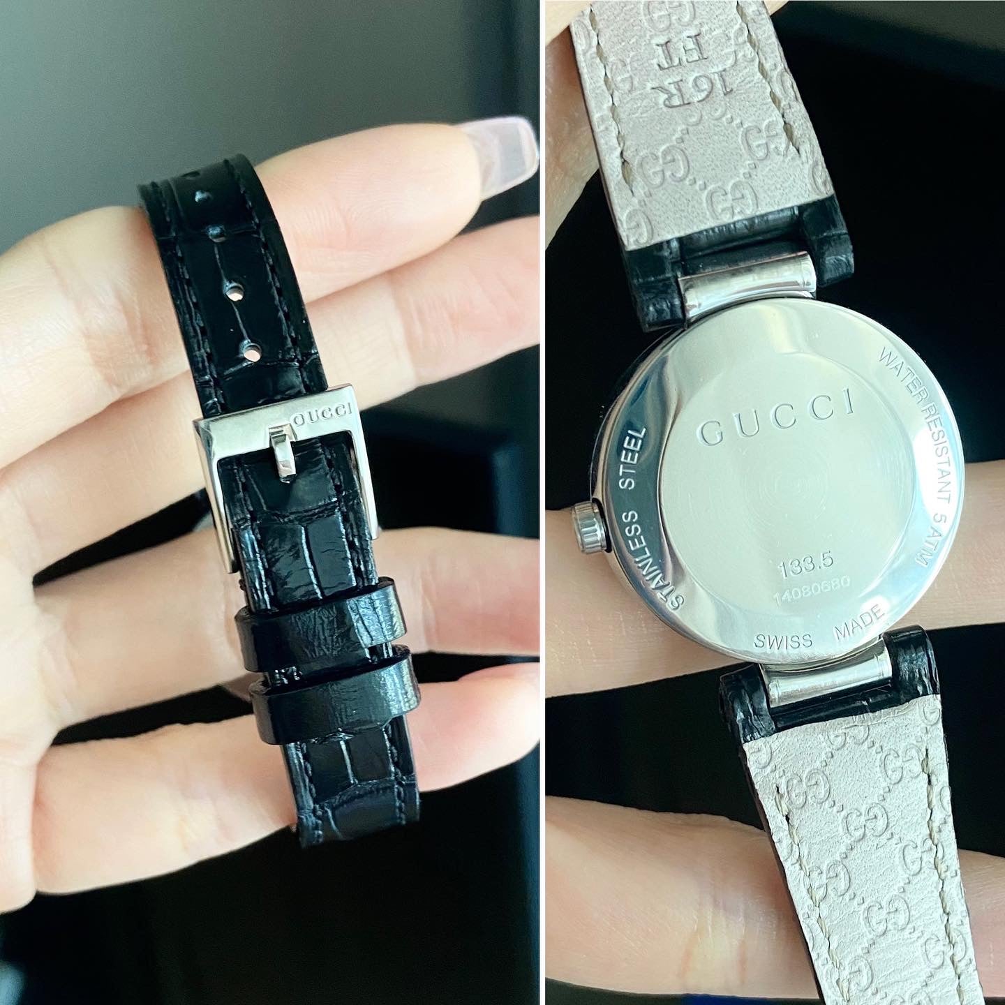 Accessories: Original Gucci watch box, top watch case, paper with Gucci cover (purchased in December 2013), and tag.