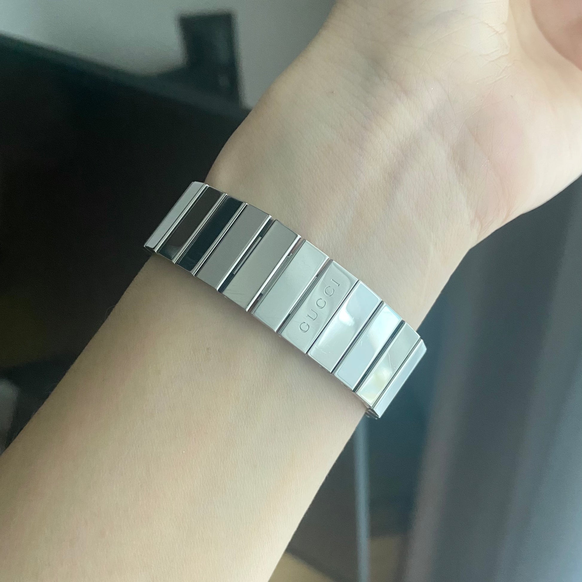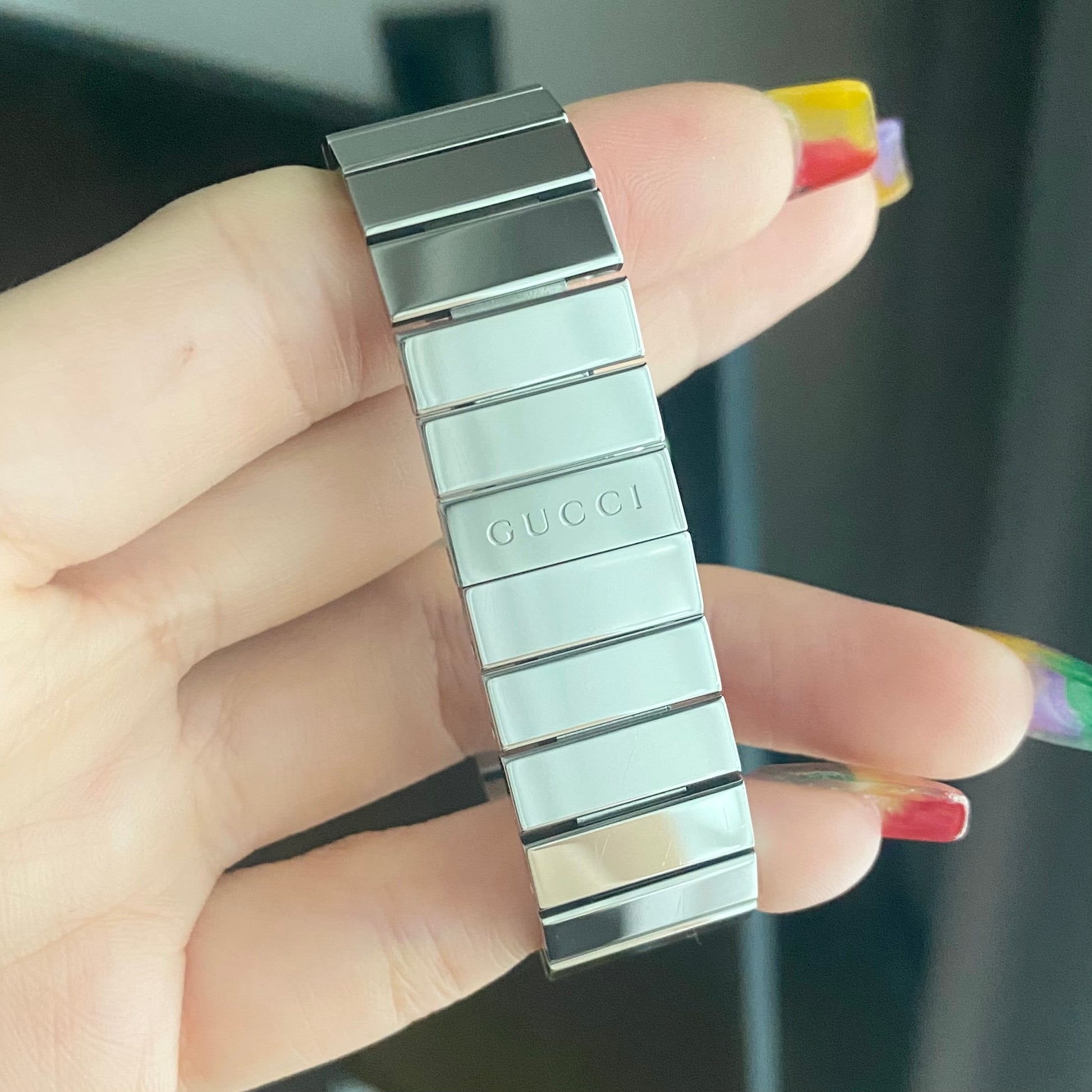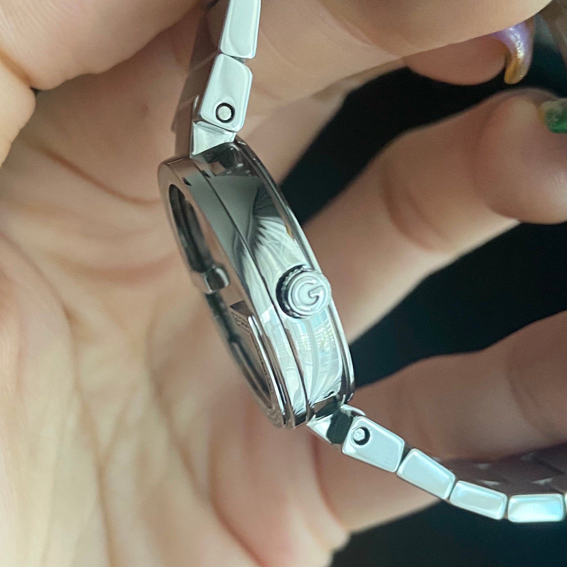 Accessories: Original Gucci watch box, top watch case, paper with Gucci cover (purchased in December 2013), and tag.