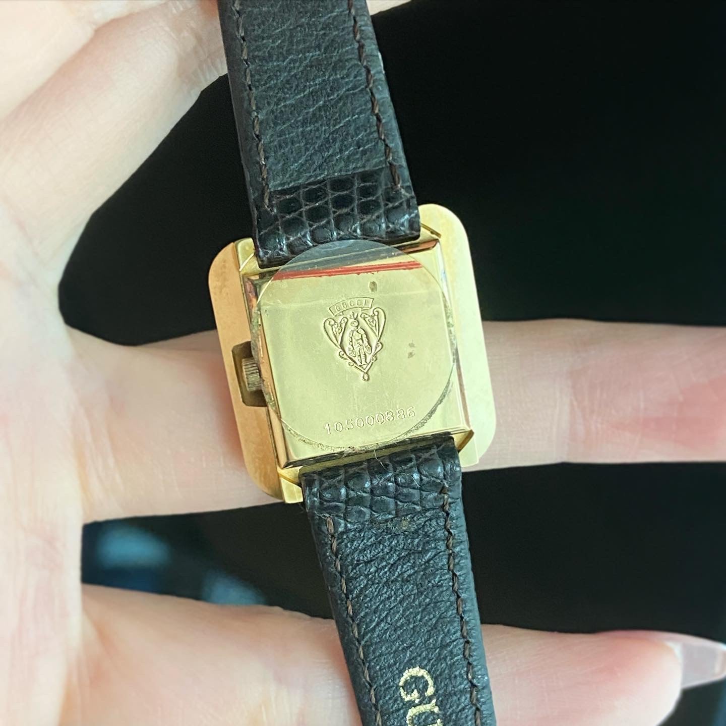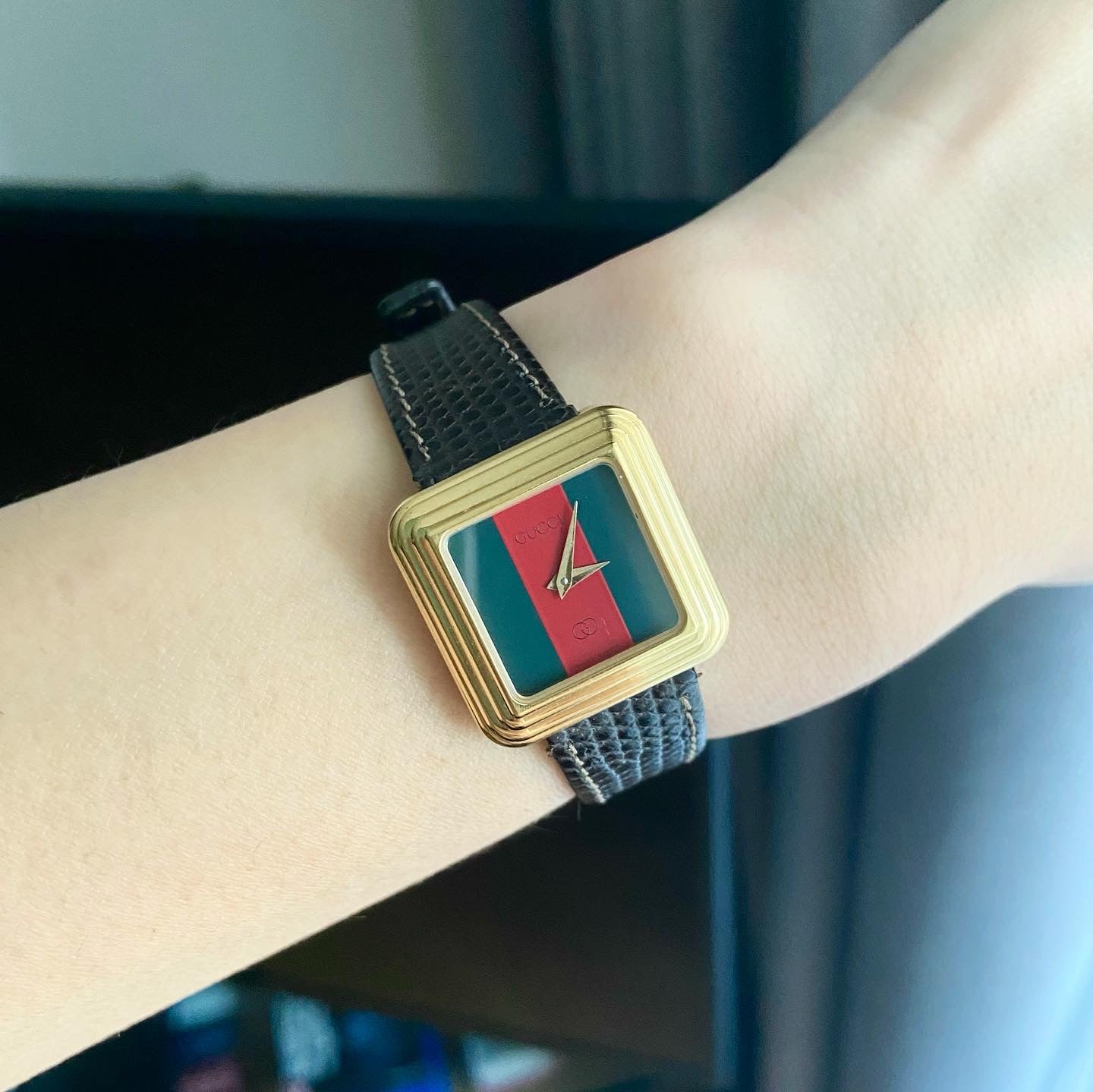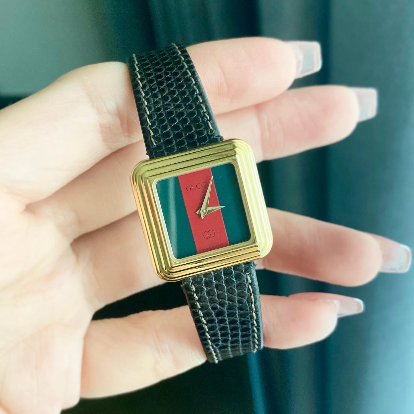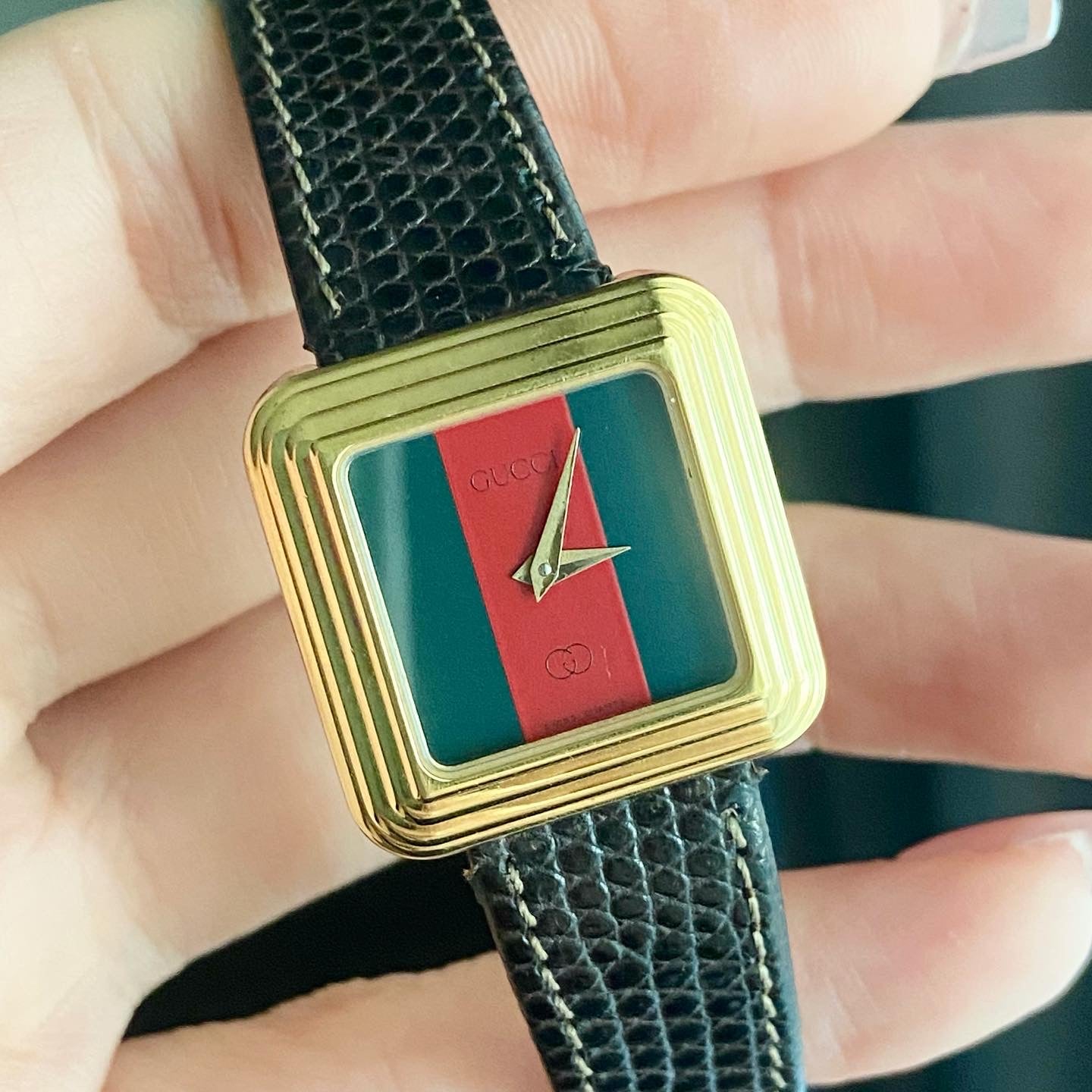 Dial: Green red green (Gucci's color) dial with 2 gold tone hands.