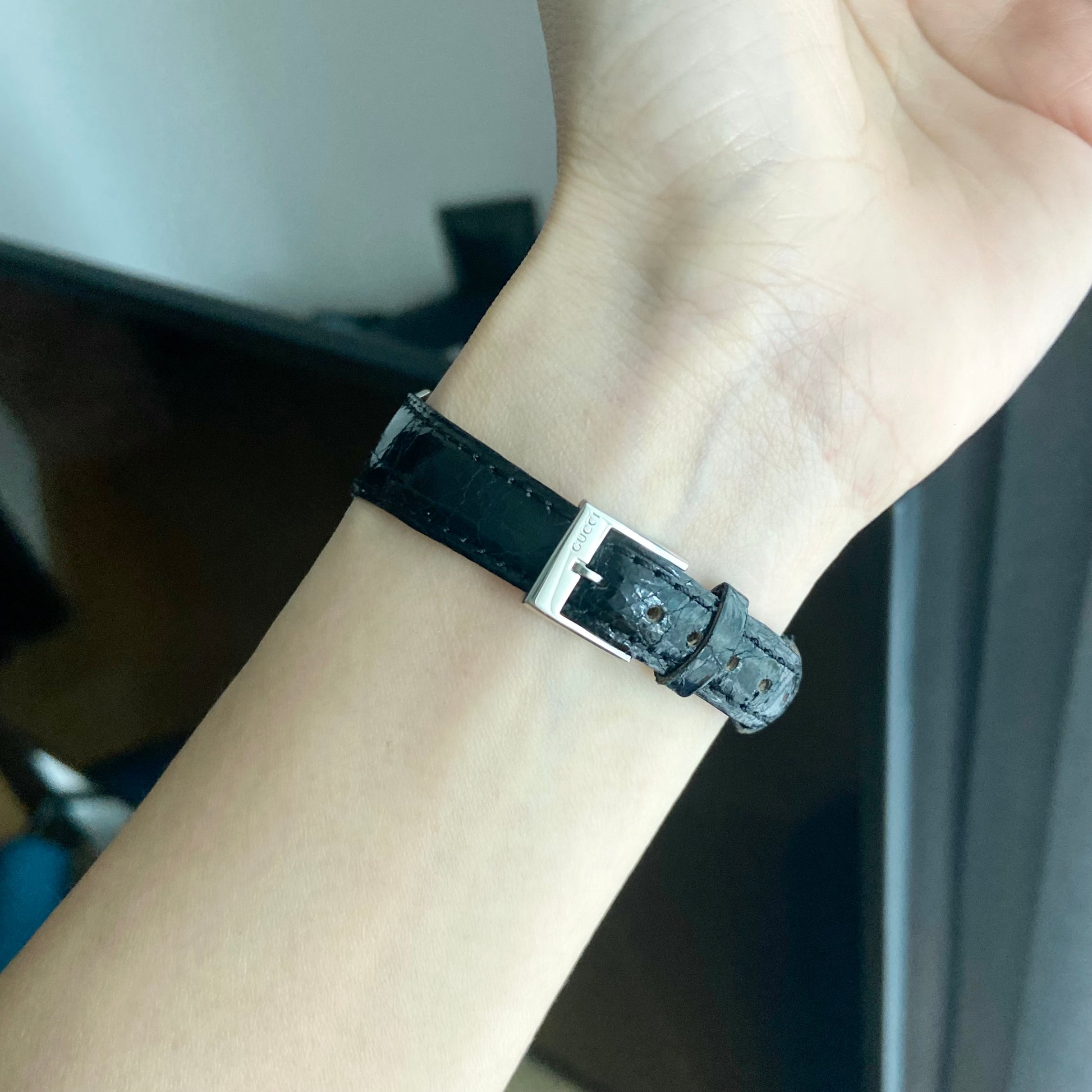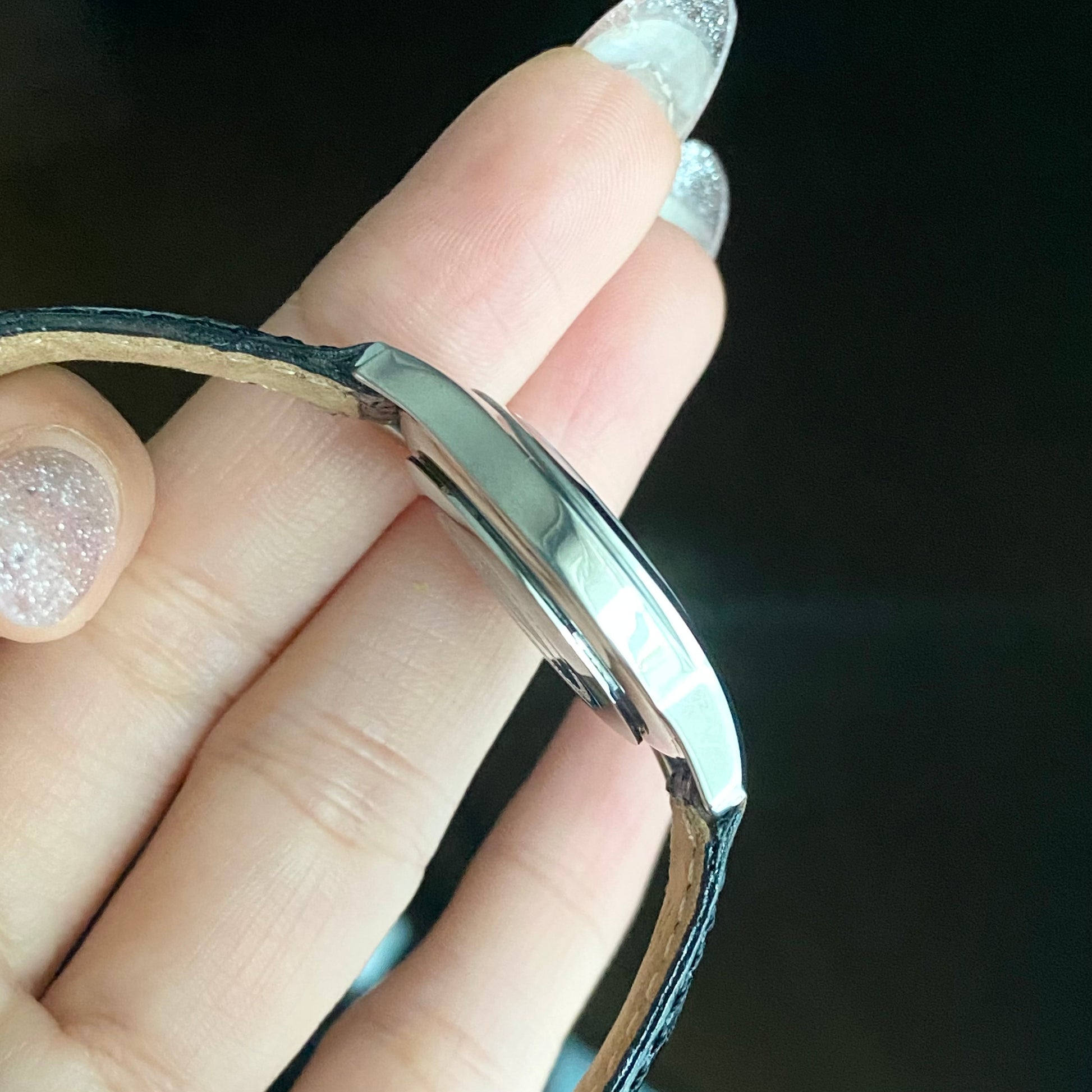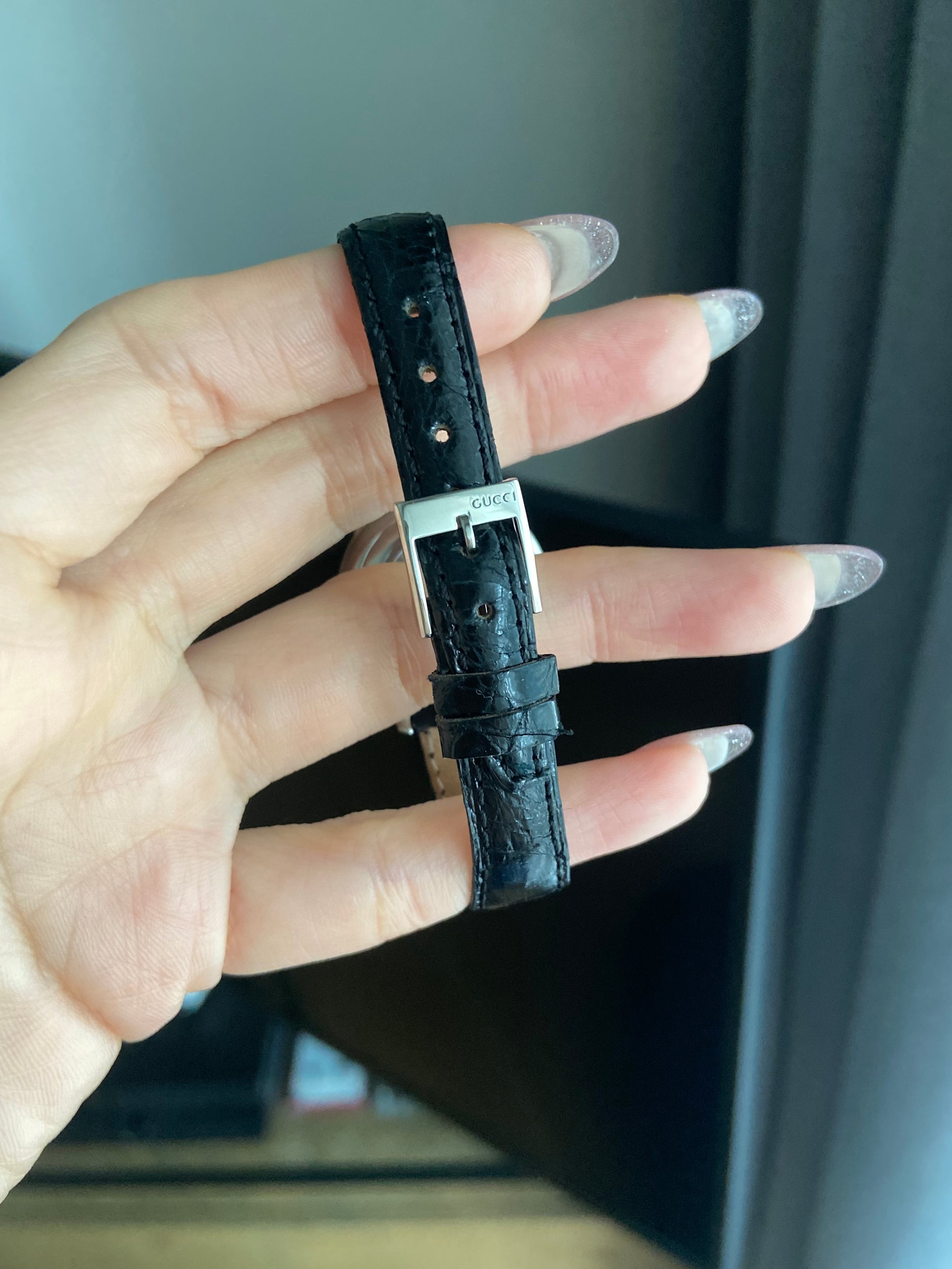 Dial: White MOP dial with 3 silver tone hands (G pinned for hands, super cute). Roman numerals. Date complication.
