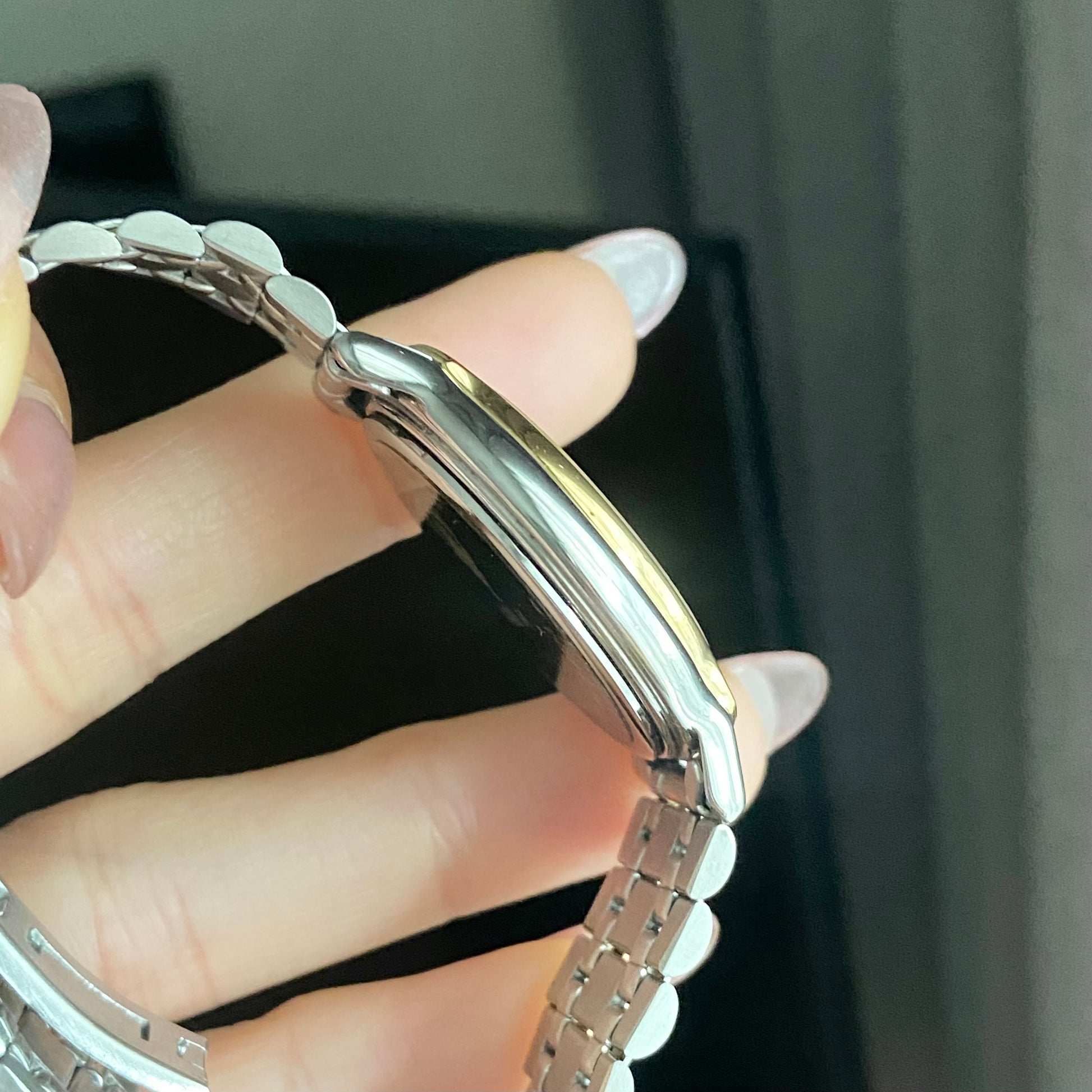 Dial: Black lacquered color with 3 gold tone hands. Stick indices. Date complication.