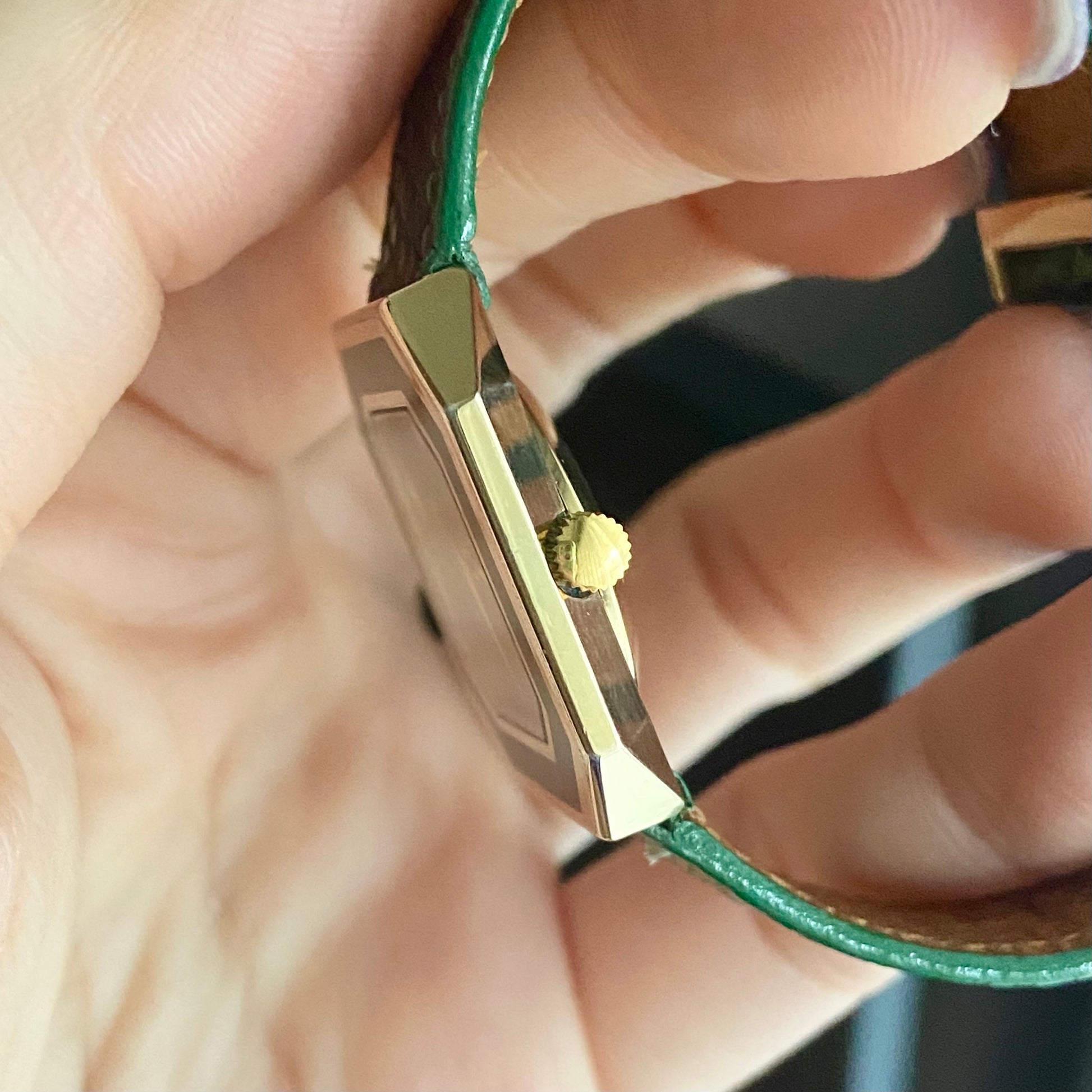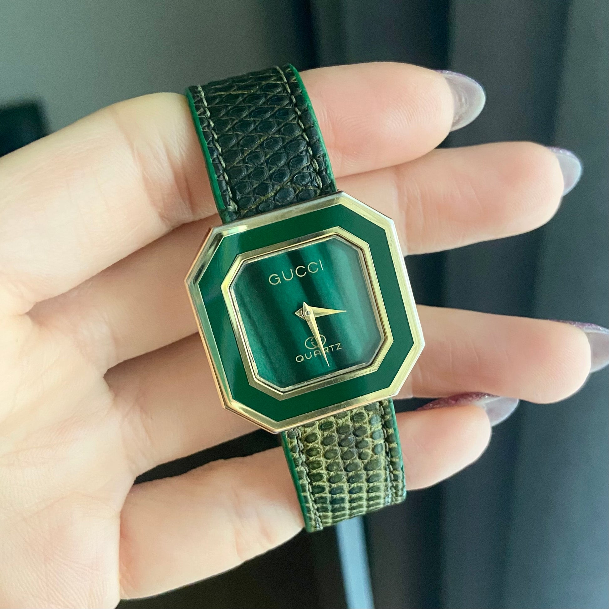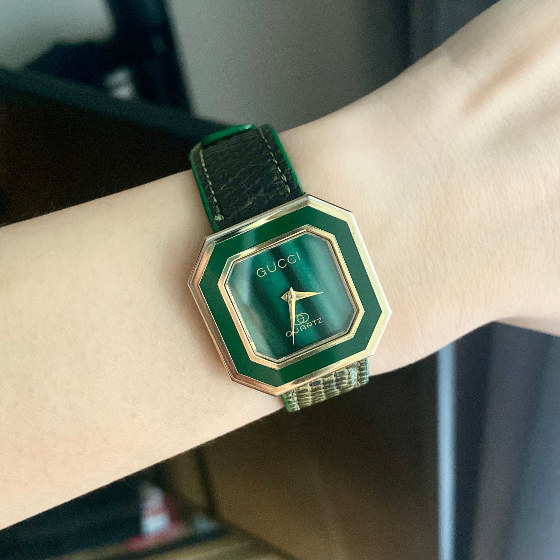Dial: Texture(like stone) green dial with 2 gold tone hands.