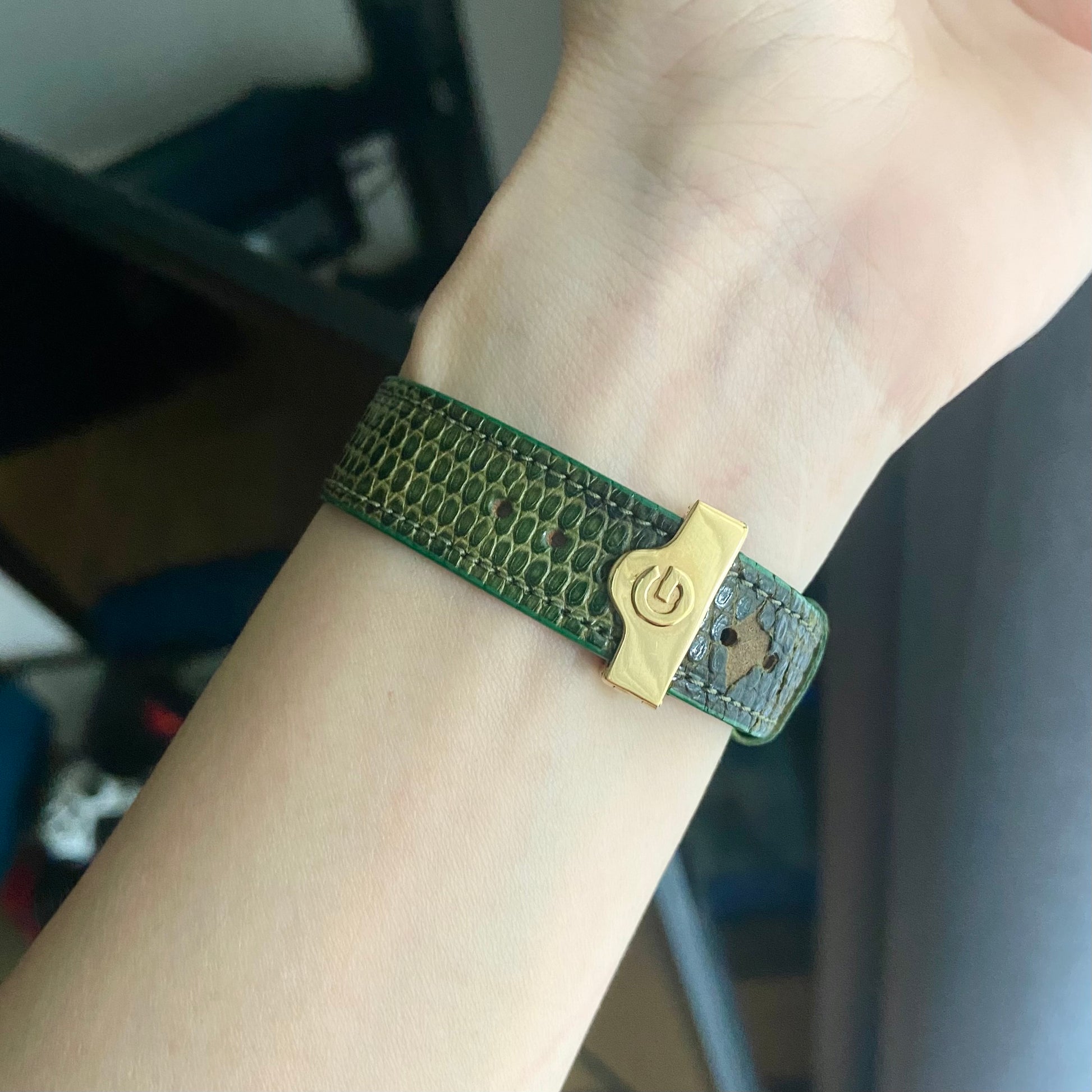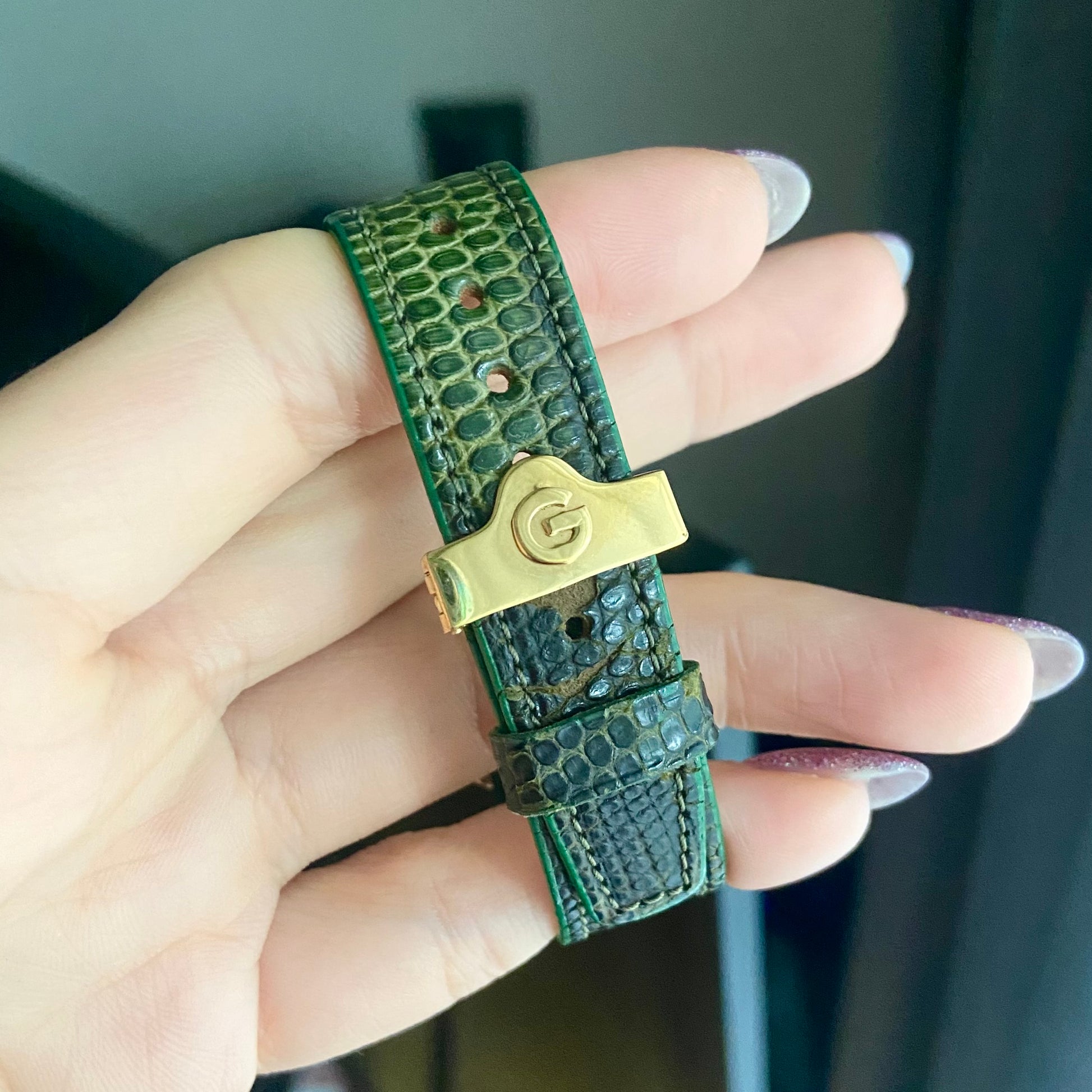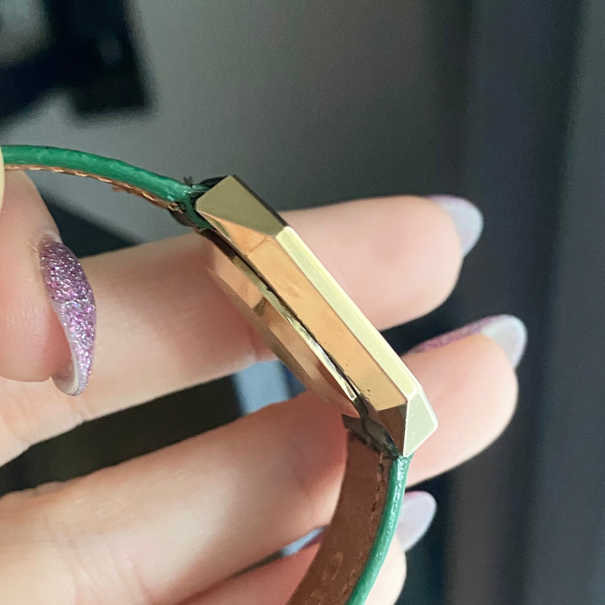 Dial: Texture(like stone) green dial with 2 gold tone hands.