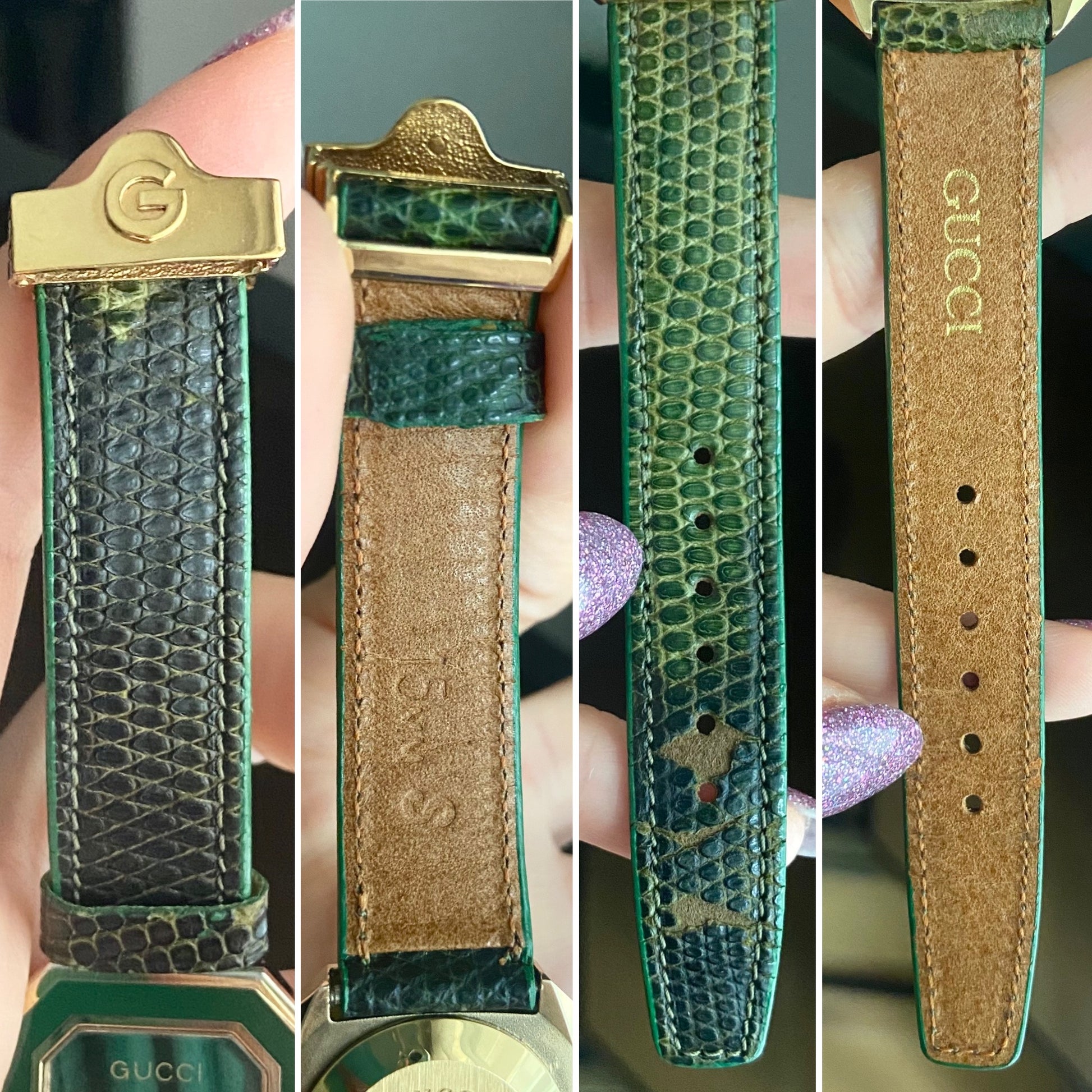 Condition: 85% the case is beautiful. The strip is darken and some parts of grained leather are missing.