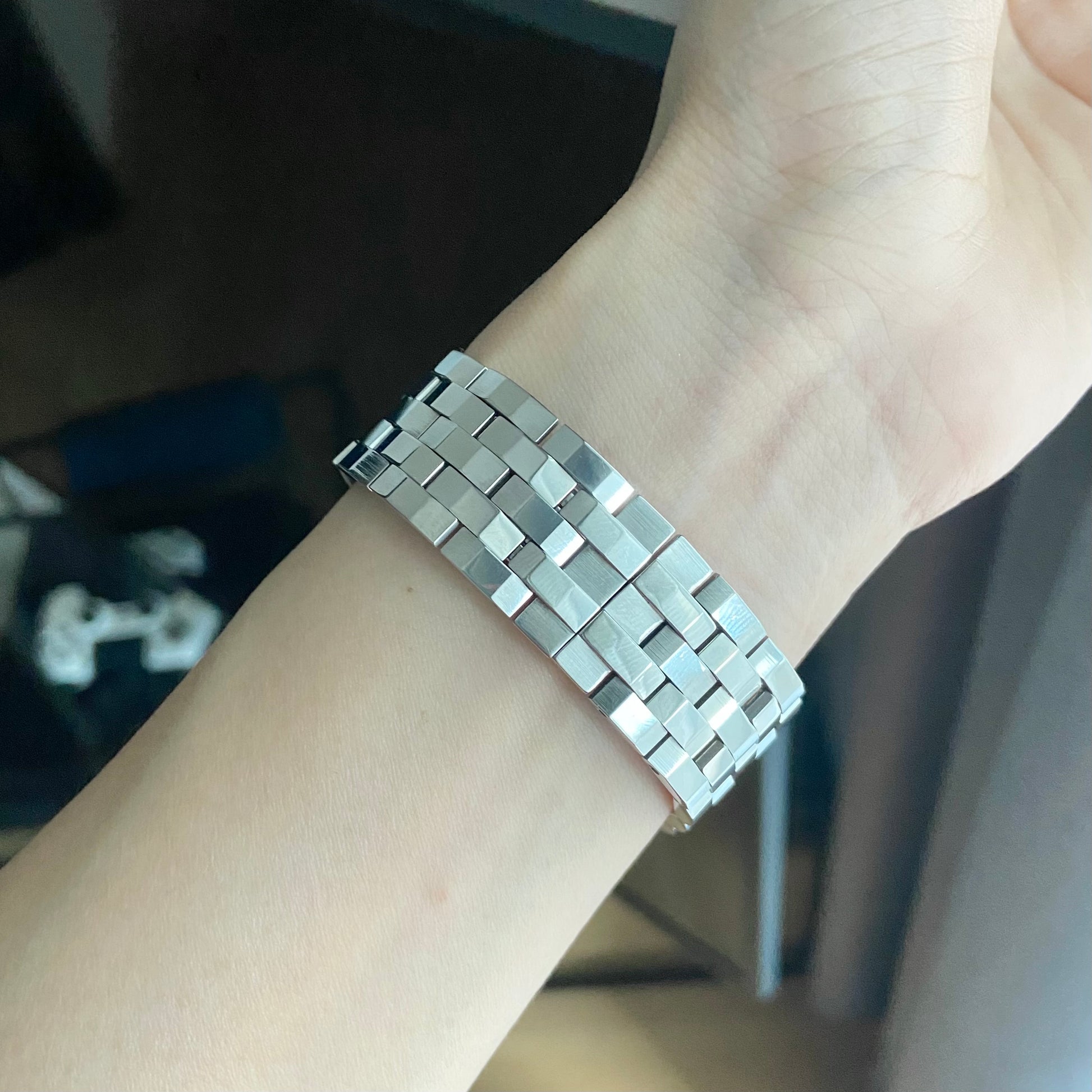Wrist size: Adjustable fit up to 18.5cm. (links can be removed for a smaller fit).