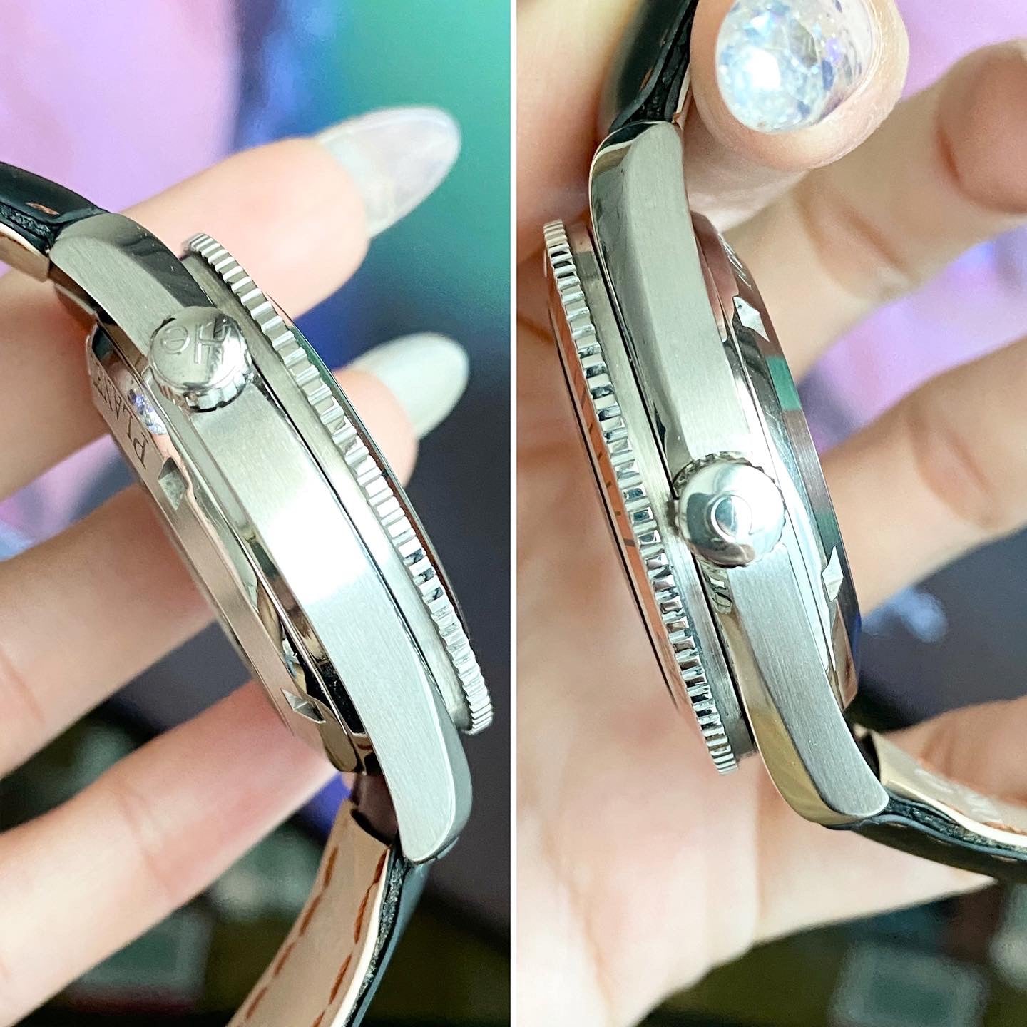 Condition: 95% there are scratches on the crystal (4-5o'clock) and a few hairlines on bezel. Case is really beatiful. Strap is very clean and beautiful.