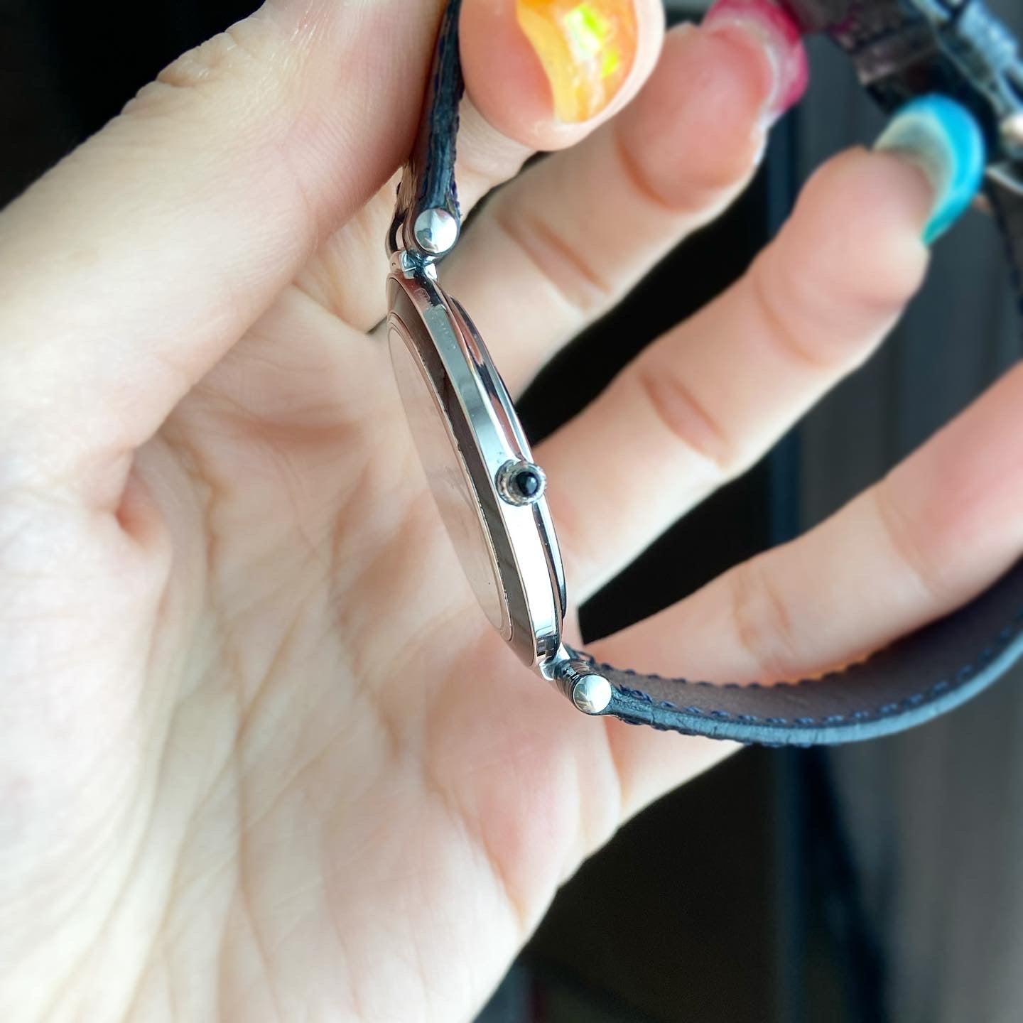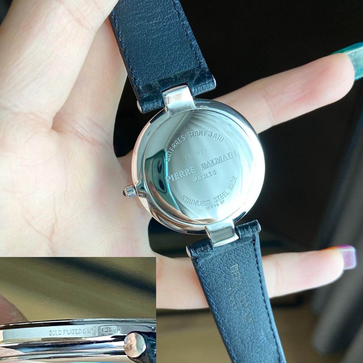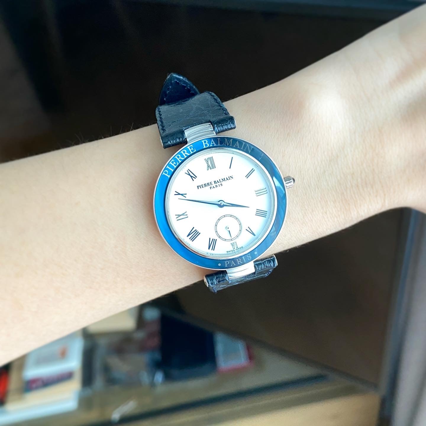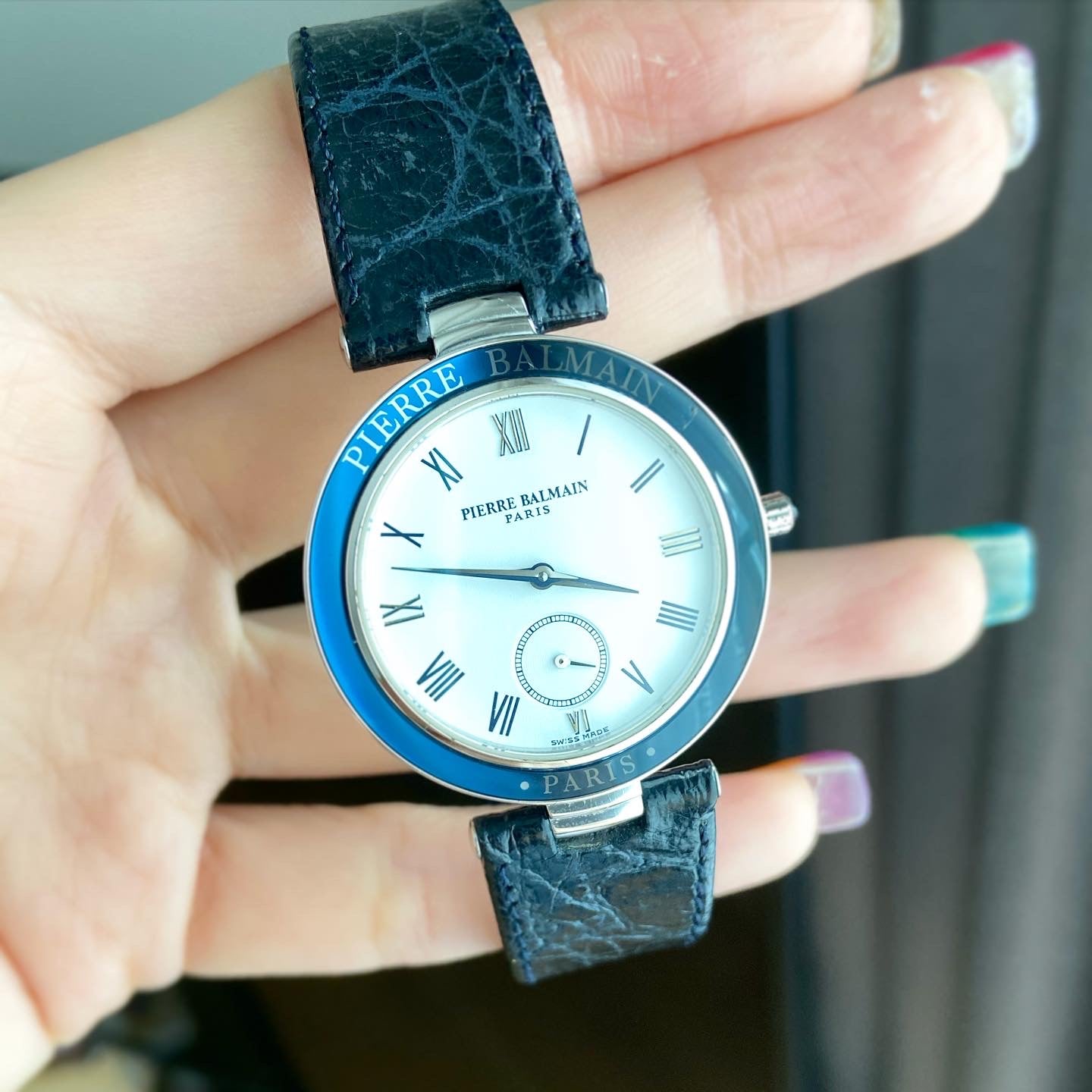 Like new!! Pierre Balmain Boysize 33mm(35รวม) หน้าปัดขาว 2เข็ม และ หน้าปัดเล็ก 1 เข็มวินาที น่ารักมาก หลักเลขโรมัน กรอบสีน้ำเงินเล่นแสงสวยมาก เรือนสีเงิน plated 10M สายเดิม สายยาว 17-21cm (เจาะเพิ่มได้) Swiss made สภาพรวม 95%+ สวยหรูมาก กระจกไร้รอย สายสวย หายากมากรุ่นนี้ มีกล่องใส่แทนให้อย่างดี 💙💙