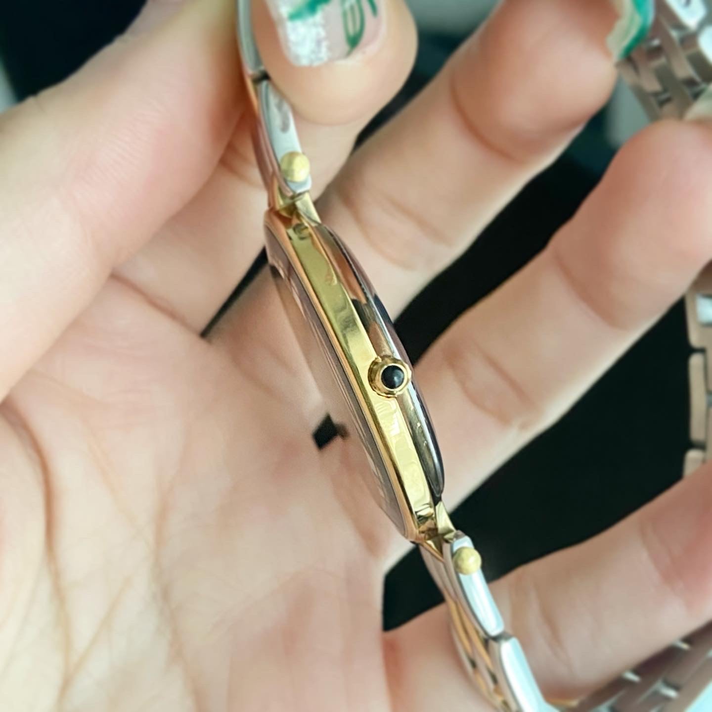 Dial: Black dial with 2 hands and one small dial for second. Roman numeral. Crystal glass with color that give reflection at the edge of dial lining with gold. It's really beautiful