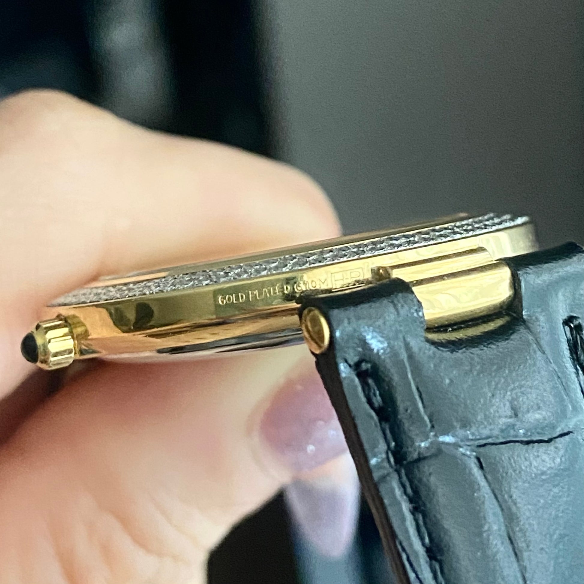Case: 18K Gold Plated 10M. Decorated on the frame like a diamonds.