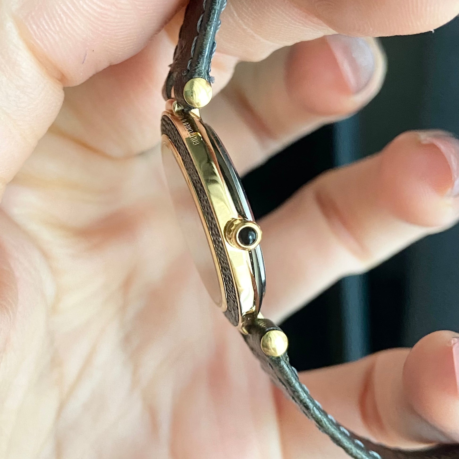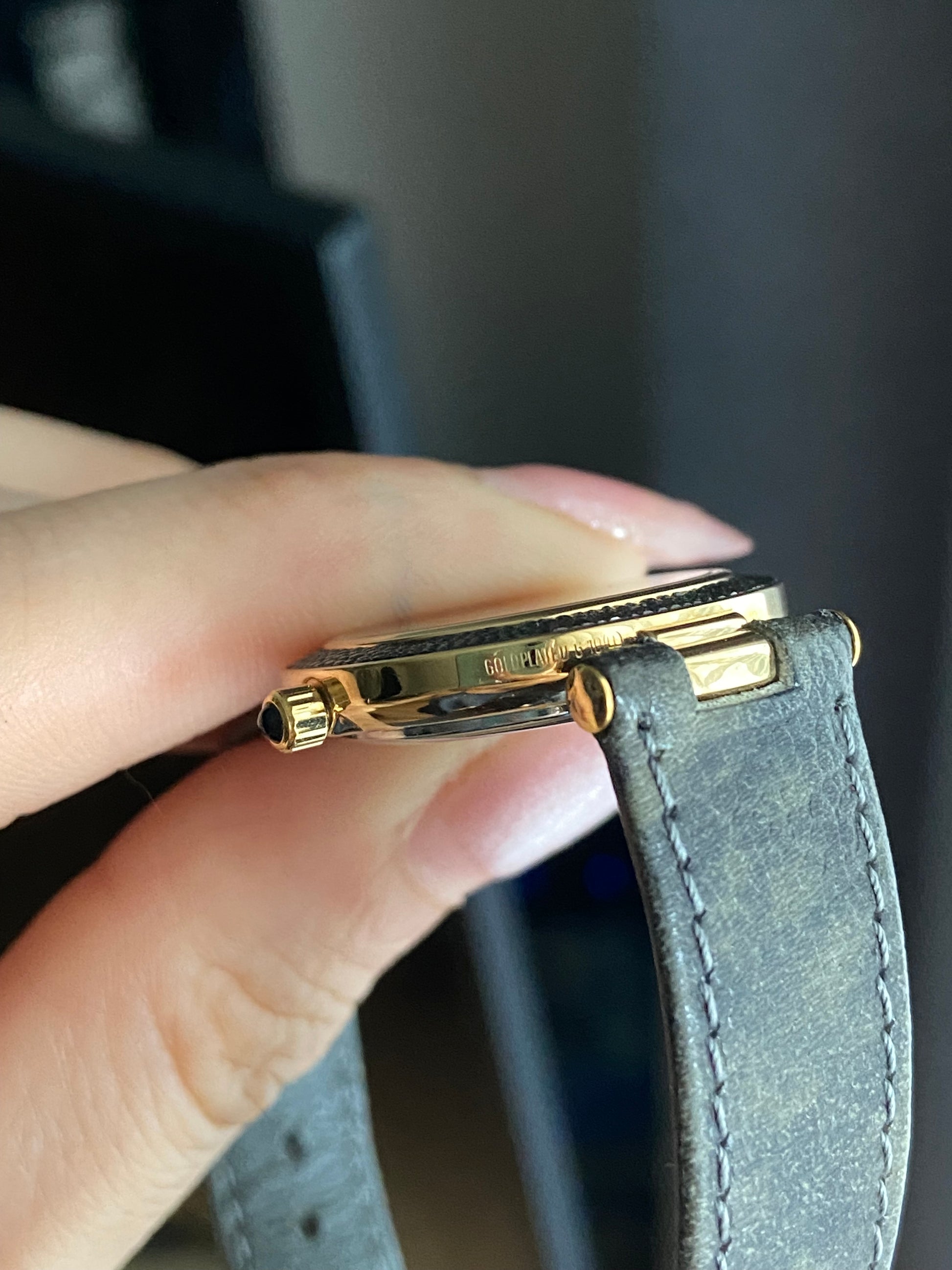 Case material: Stingray skin with gold plated 10M on the frame with gold plated 10M case.