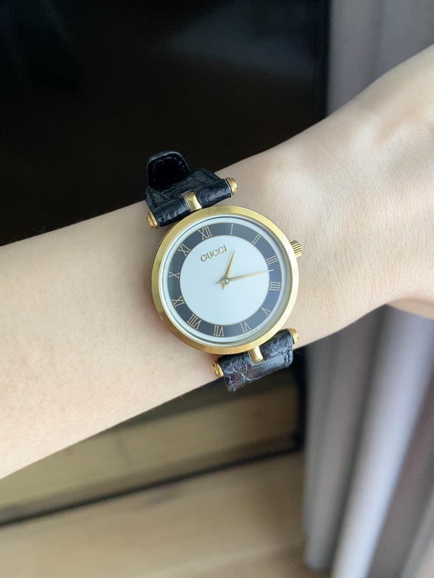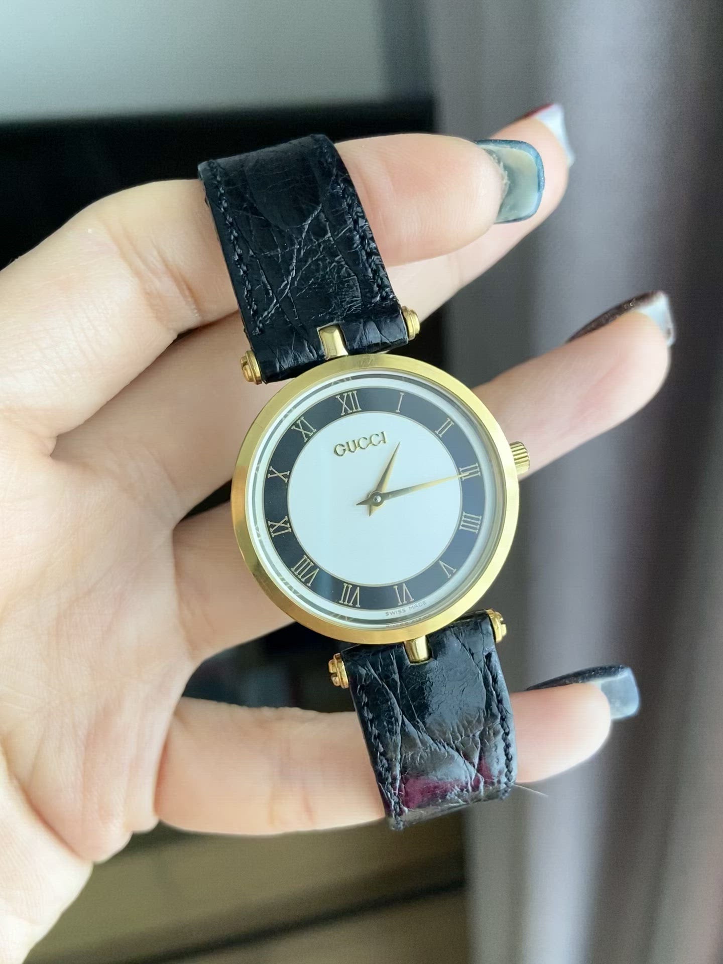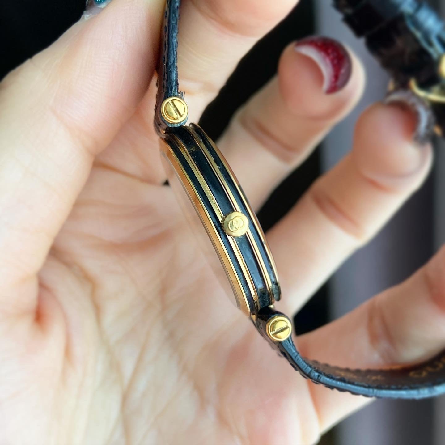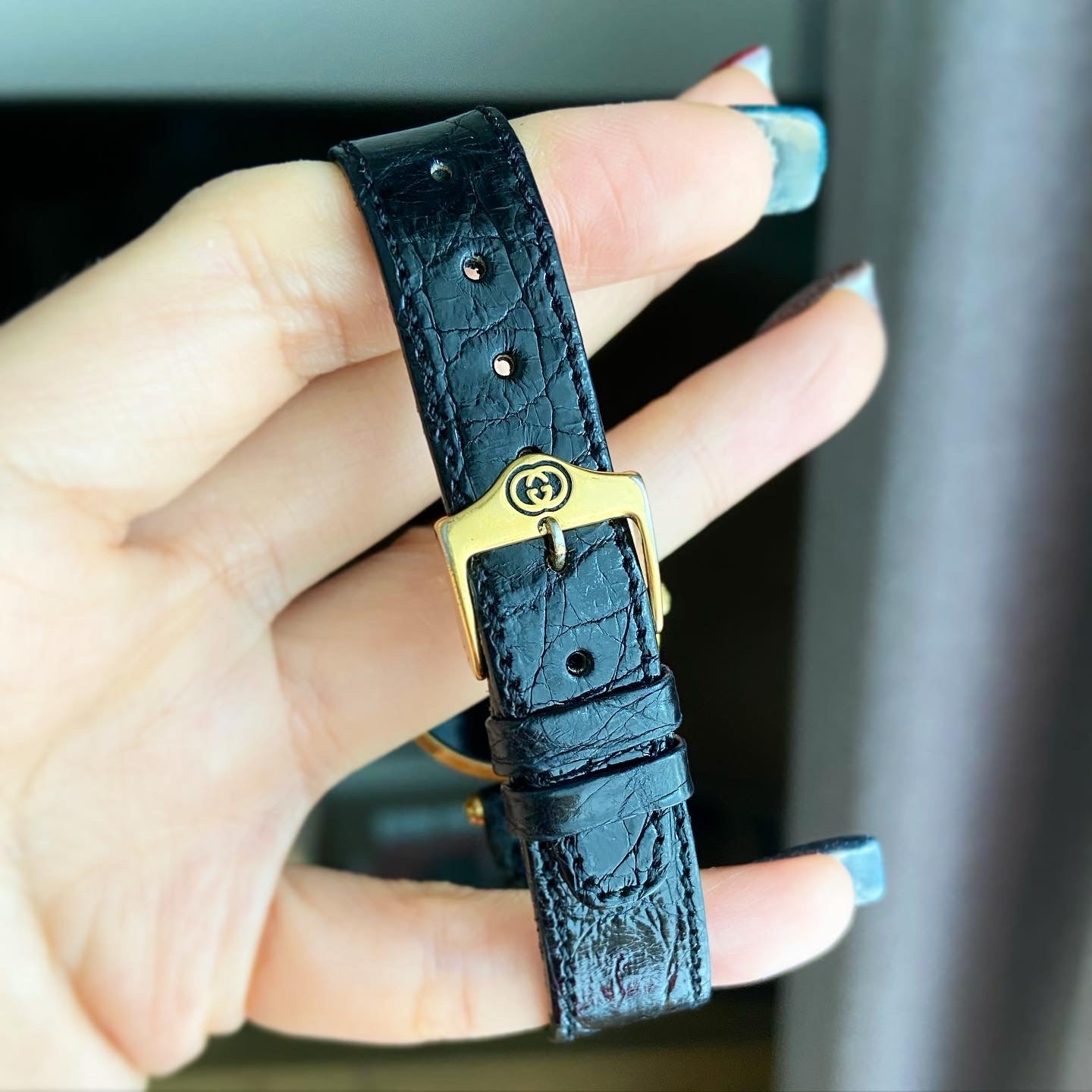 Gucci 2000M Boysize 30mm(32รวม) เรือนทอง 18KGP 10M ชั้นสีดำ สายแท้ ใหม่ สายยาว 16.2-20.2cm สภาพรวม 95%++ สวยหรูมาก มีกล่องใส่แทนให้อย่างดี 🖤🖤