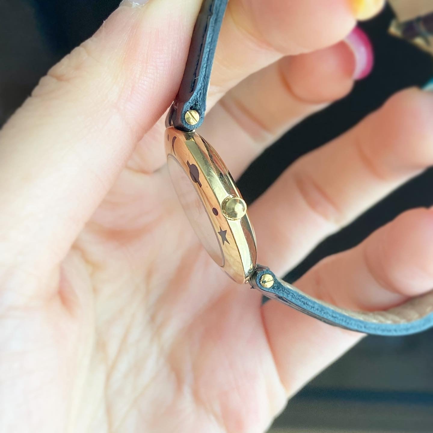 Good condition!! Raymond Weil 5357 Ladies size 26mm(28รวม) หน้าปัดมุก (MOP dial) 2เข็ม เรือนทอง 18KGP 10M สวย ลายดวงจันทร์ ดาวต่างๆ น่ารักมาก สายไม่เดิม เป็นสายหนังแท้เปลี่ยนใหม่อย่างดี สายยาว 14.2-17.8cm บัคเคิลเดิม สวย Swiss สภาพรวม 90%+++ สวยหรู น่ารักมาก กระจกไร้รอย ทองมีรอยขนแมวบ้าง รวมๆสวย น่ารักมาก มีกล่องใส่แทนให้อย่างดี ⭐️🌙
