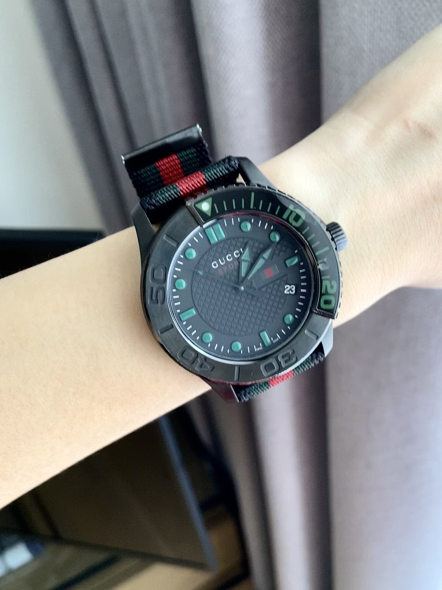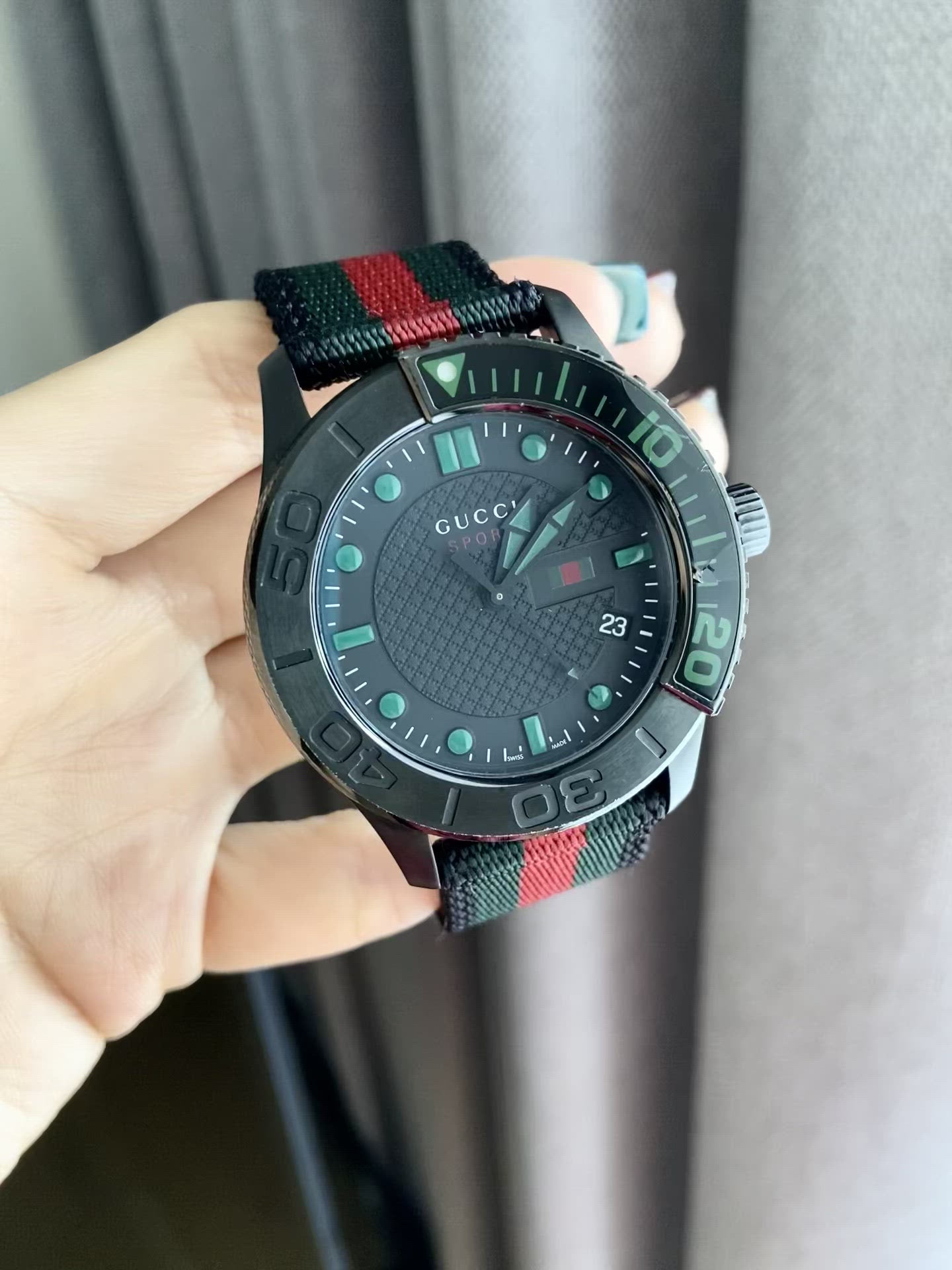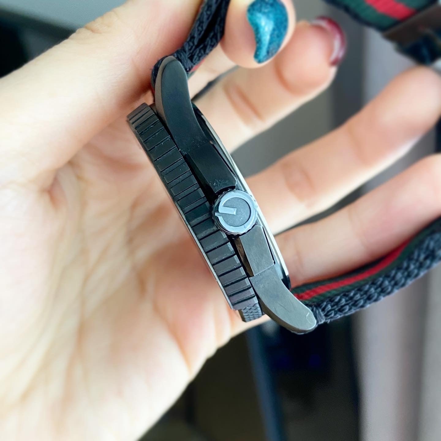 G-Timeless Sport XL YA126229 Men size 44mm (48รวม) หน้าปัดดำตัวจี สวยมาก 3เข็ม กรอบหมุนได้ ตัวเรือนดำ PVD สายเดิม ลาย Signature แบรนด์ สวยมาก สายยาว 17-21cm (ในรูปข้อมือ 13cm ก็ใส่ได้นะคะ สวยมาก) สภาพรวม 95% กระจกไร้รอย กรอบมีร้าว(ปกติมากของรุ่นนี้) ไม่น่าเกลียดเลย เรือนมีรอยบ้าง แต่น้อย สายสวยมาก มาพร้อมกล่องแท้-ปลอกนอก แคร์บุค(ซื้อปี 2017) สวยหรูมากกก หายาก💚♥️