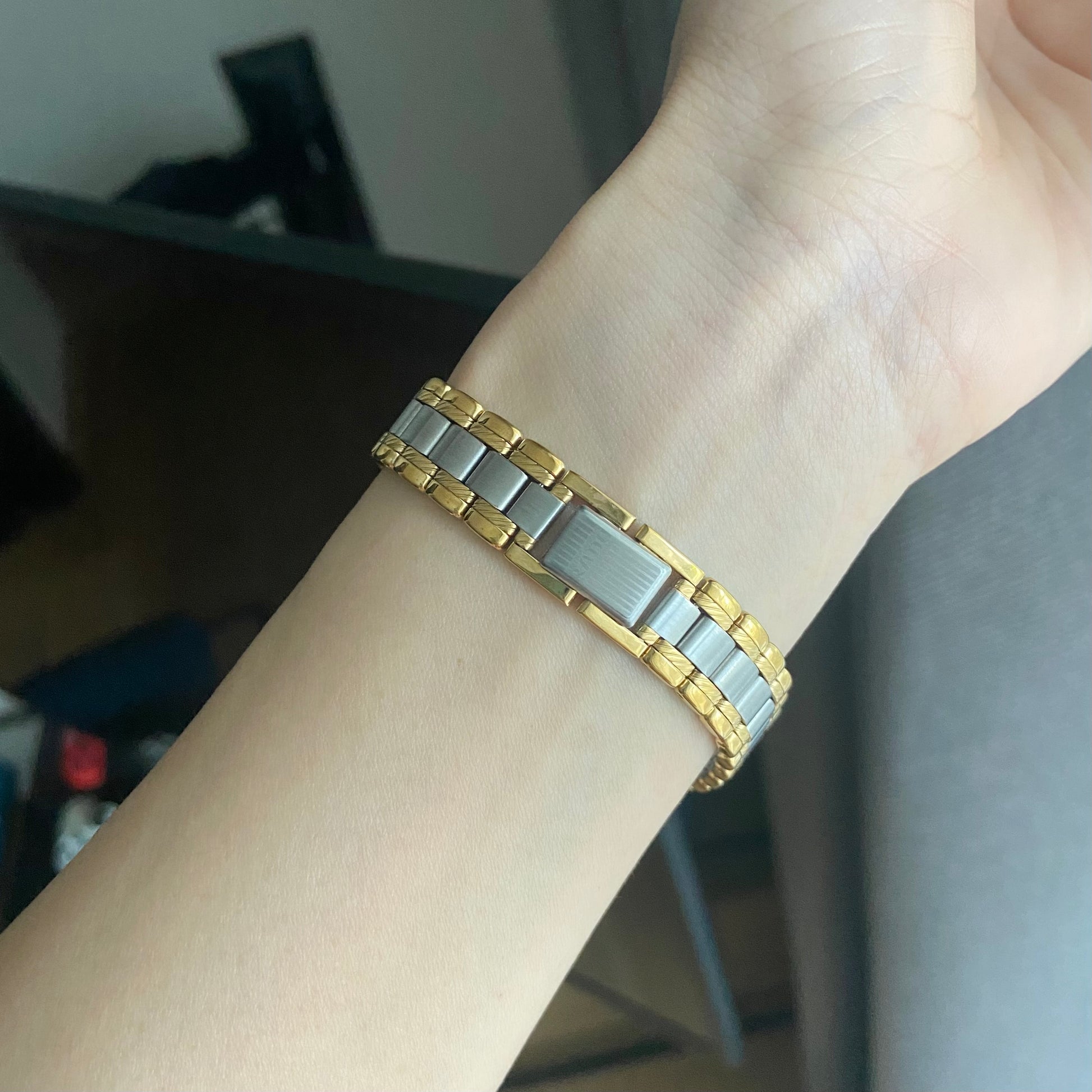 Strap: Gold Plated Stainless Steel/ Stainless Steel.