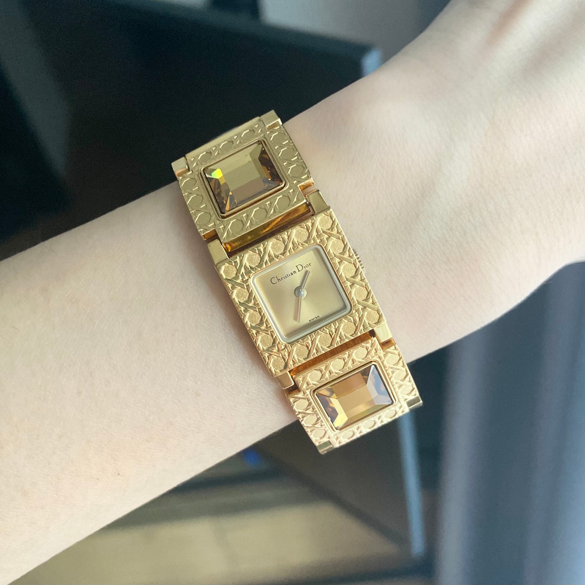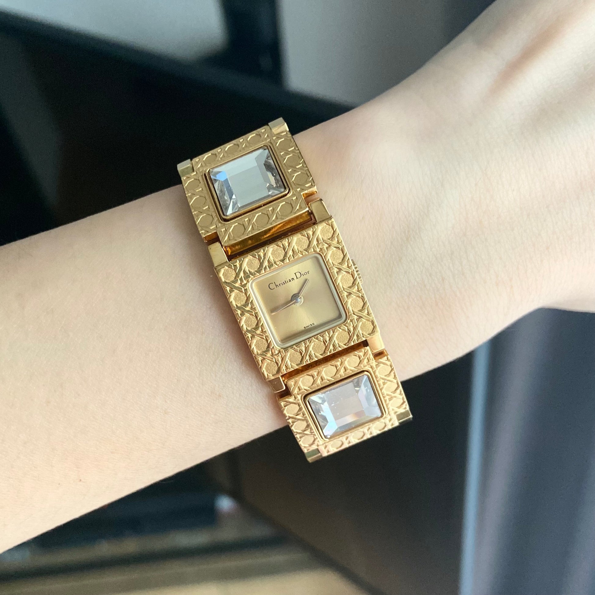 Accessories: Original Christian Dior watch zippy bag(peeled outer leather, common for this model because it's been stored for very long time), booklets, big instruction book, and card(purchased in South Korea, 1998) and 2 tags.
