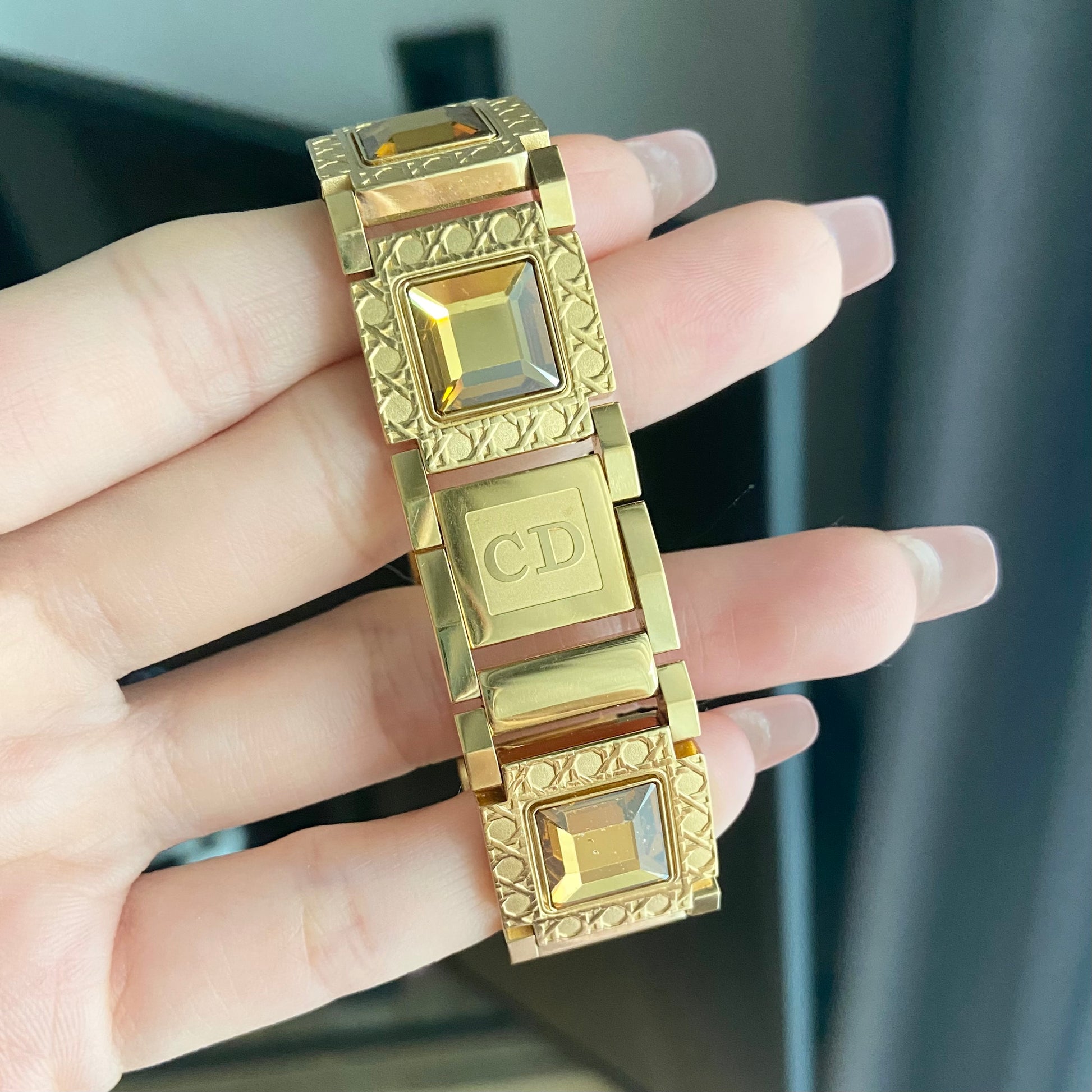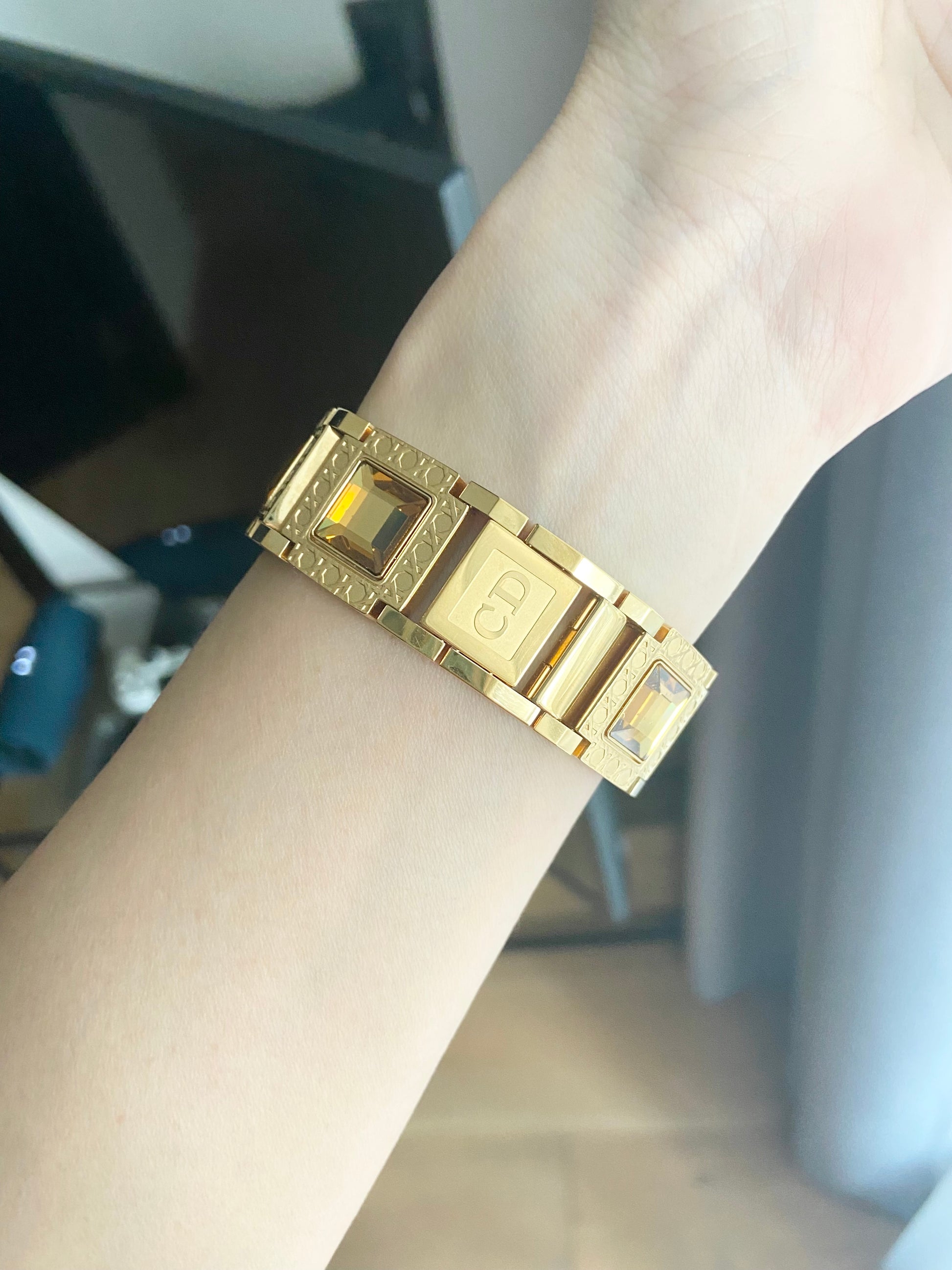 Bracelet: 18KGP 10M, with removable crystals 2 different sets: yellow sparkling and white sparkling, and 1 gold tone plain set.