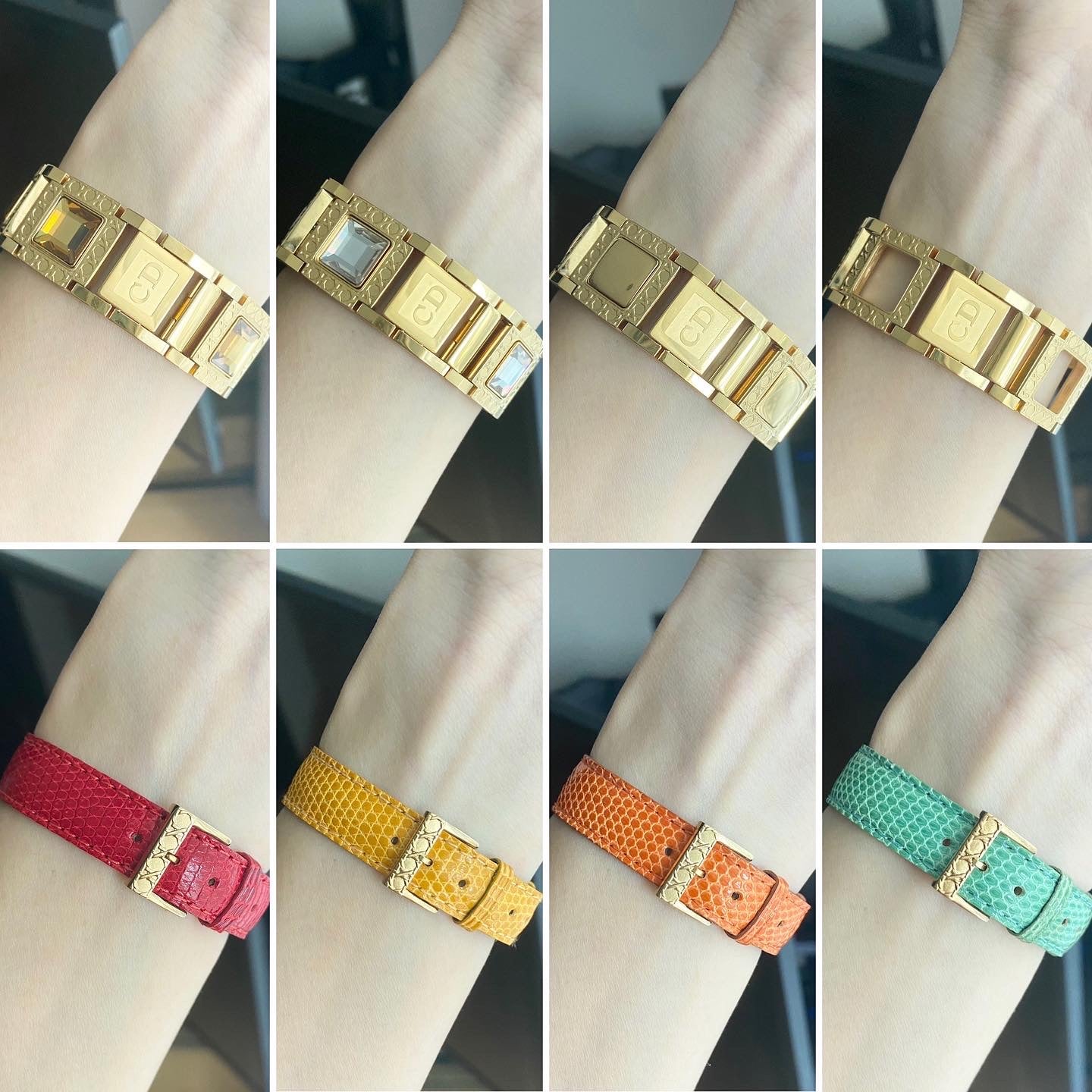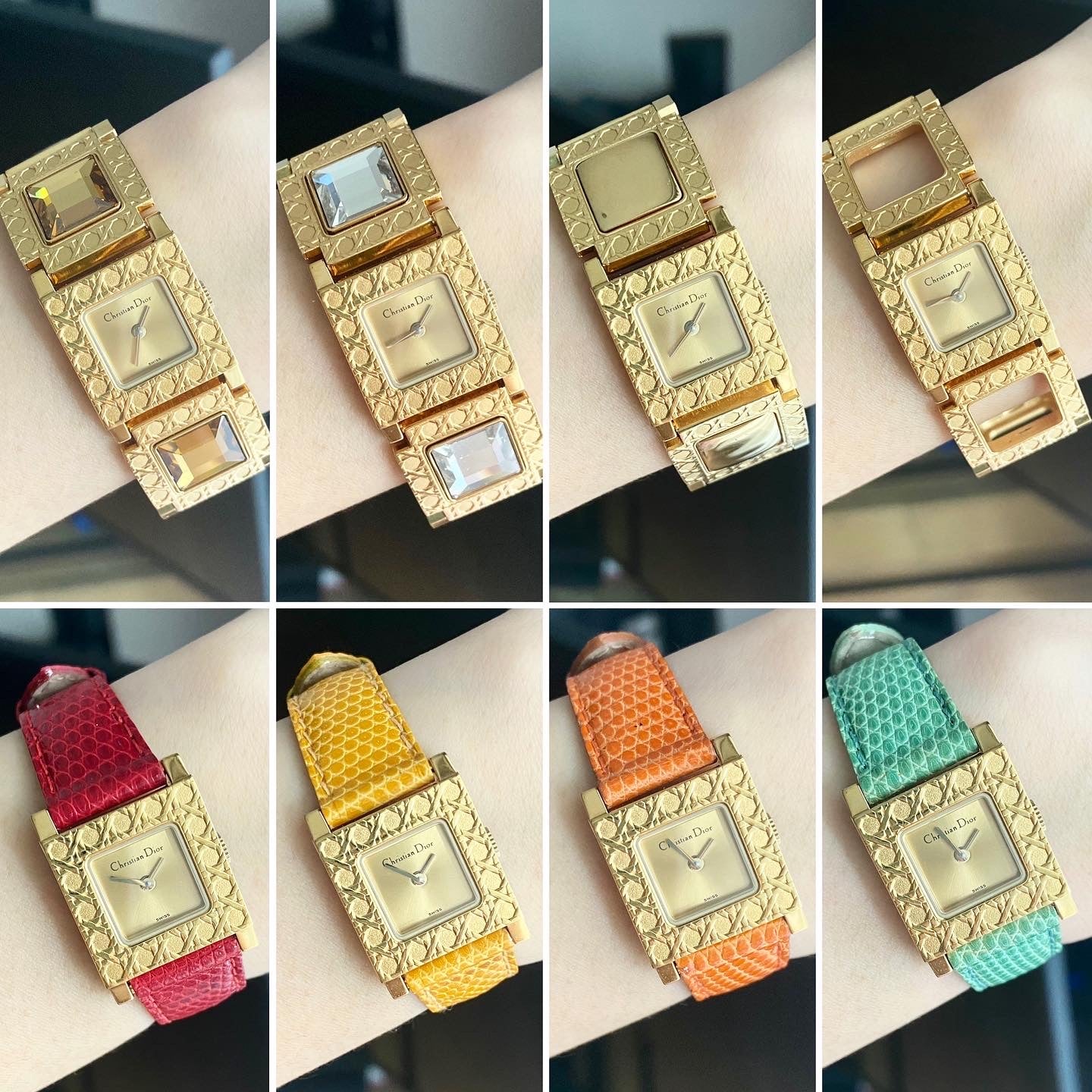 Condition: 95%++++ very beautiful. There are minor scratches on the back of crystals and plain set. Bracelet and case are beautiful. Leather straps are all new (unused) but there might be some sign from storing.