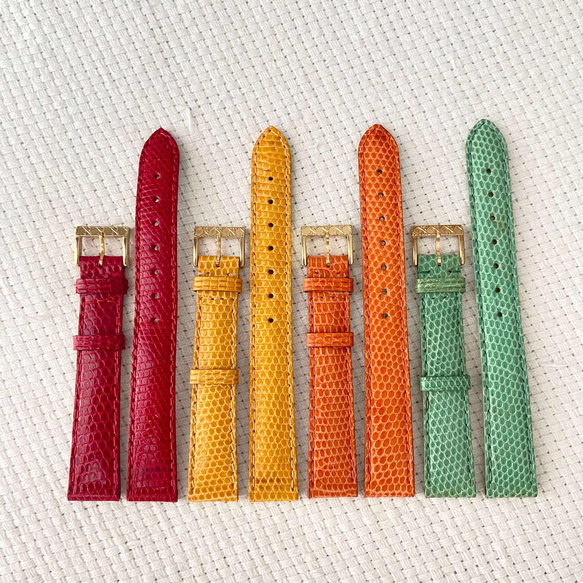 Strap: 4 new original lizard straps: red, orange, yellow and light green.