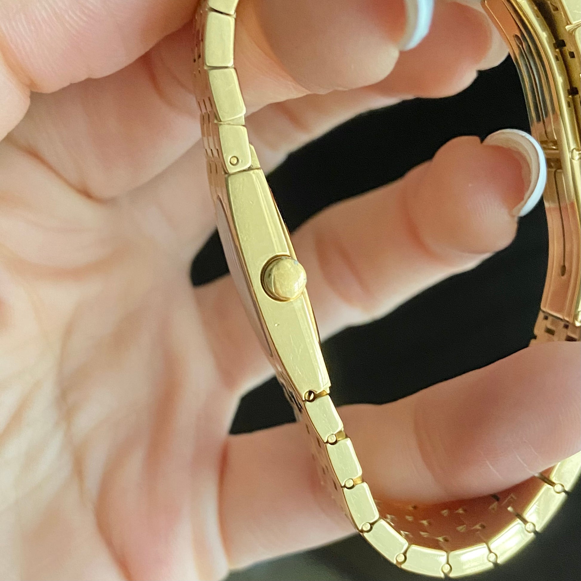 Dial: Brushed gold tone dial with 2 gold tone hands.