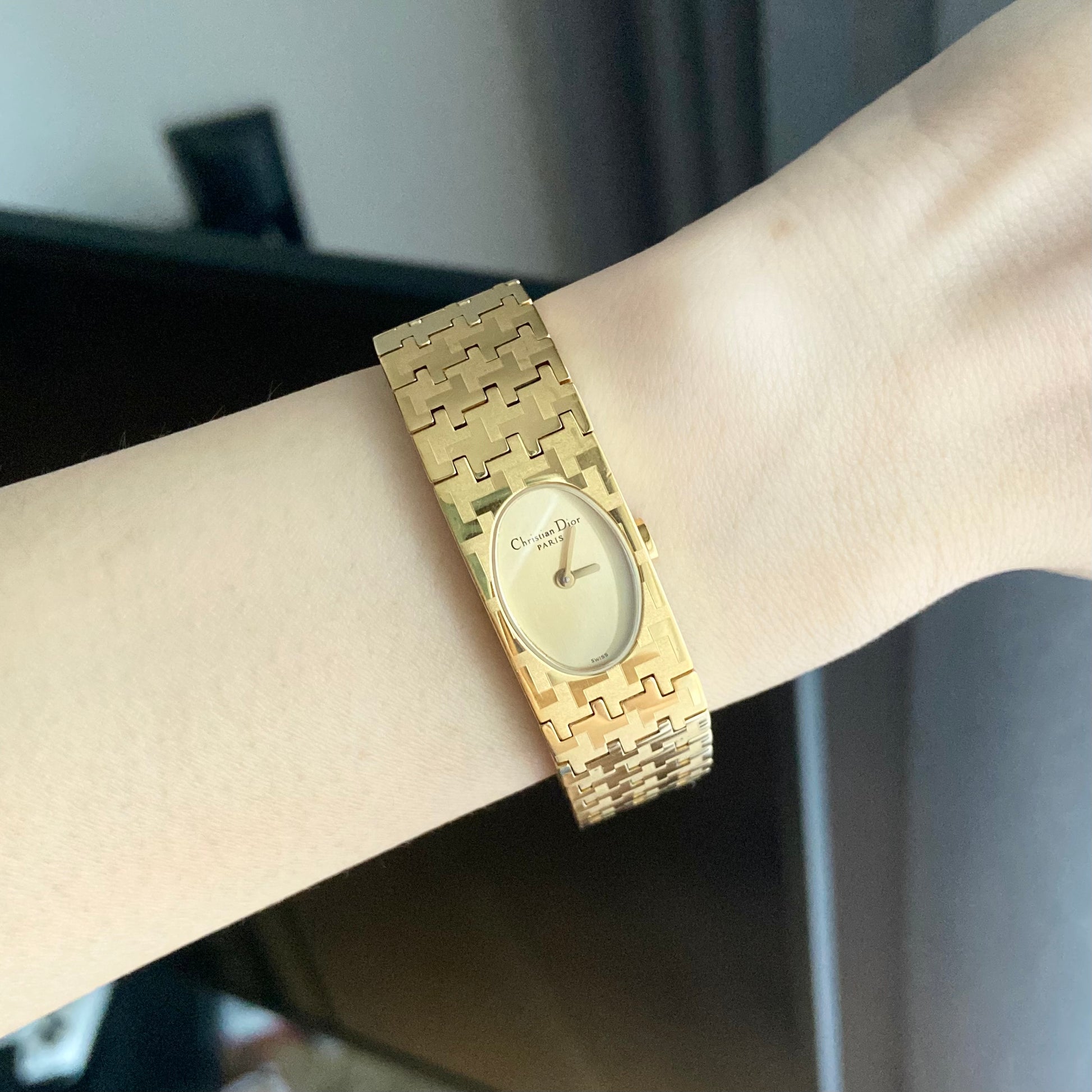 Strap: Gold plated 10M stainless steel with houndstooth pattern (one of Dior's signature's pattern).