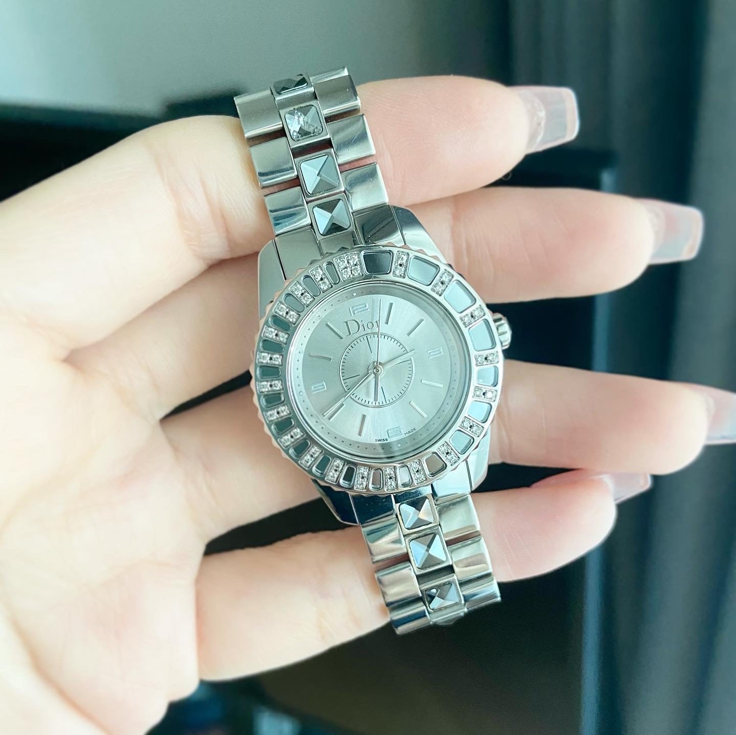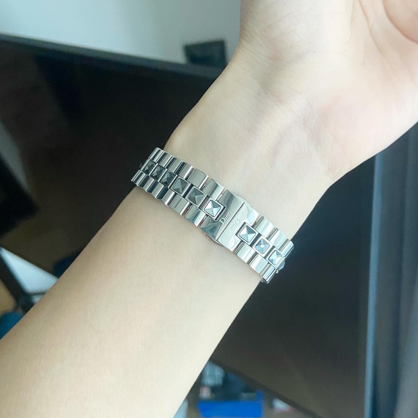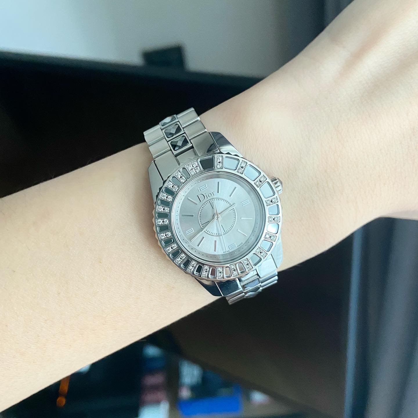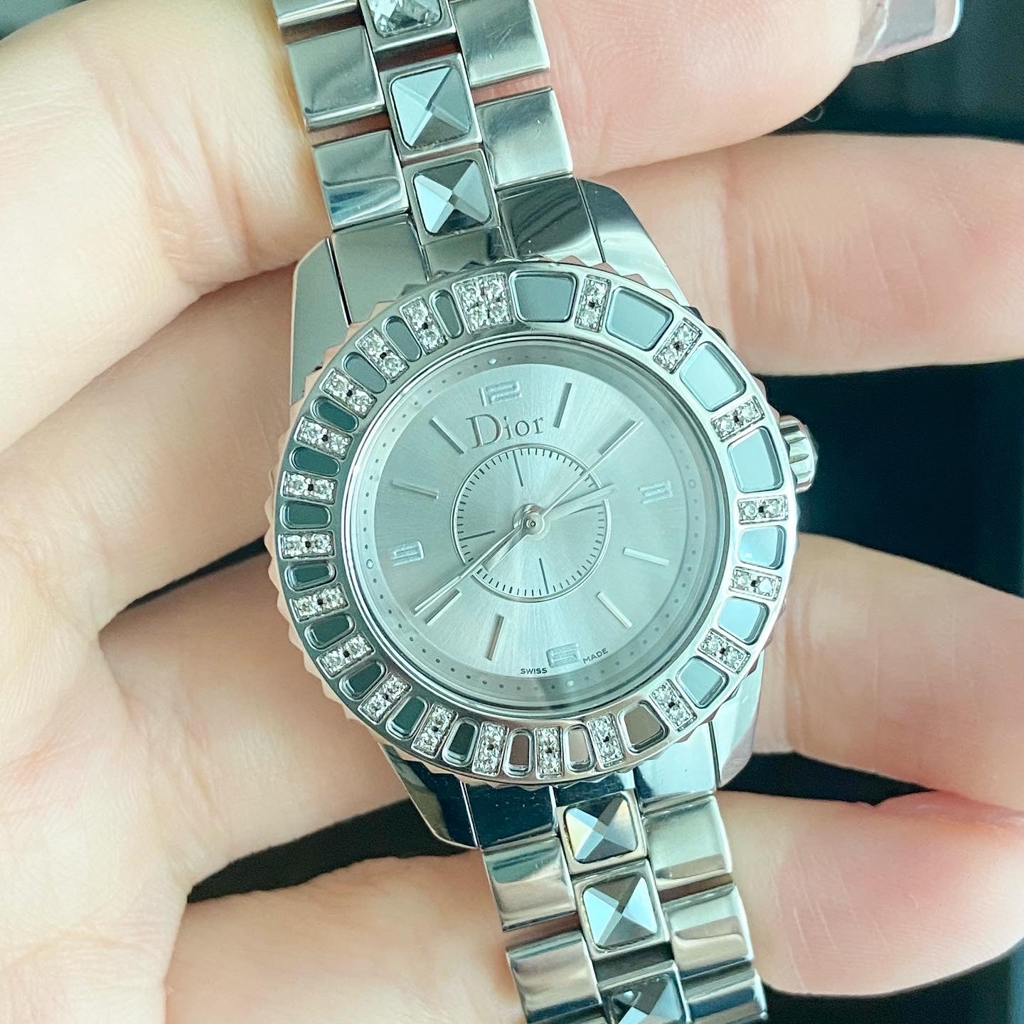 Expert authenticated Christian Dior Christal CD112112M001 44D(0.28cts) Gray Crystals watch.