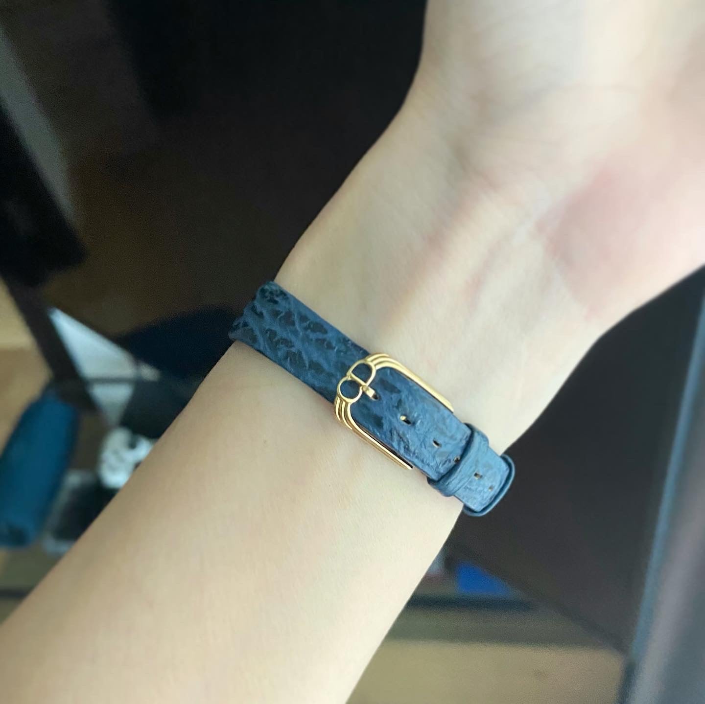 Dial: Blue mother of pearl dial with 2 Gold tone hands. Full sapphire glass with Christian Dior laser in gold tone (this model's signature).