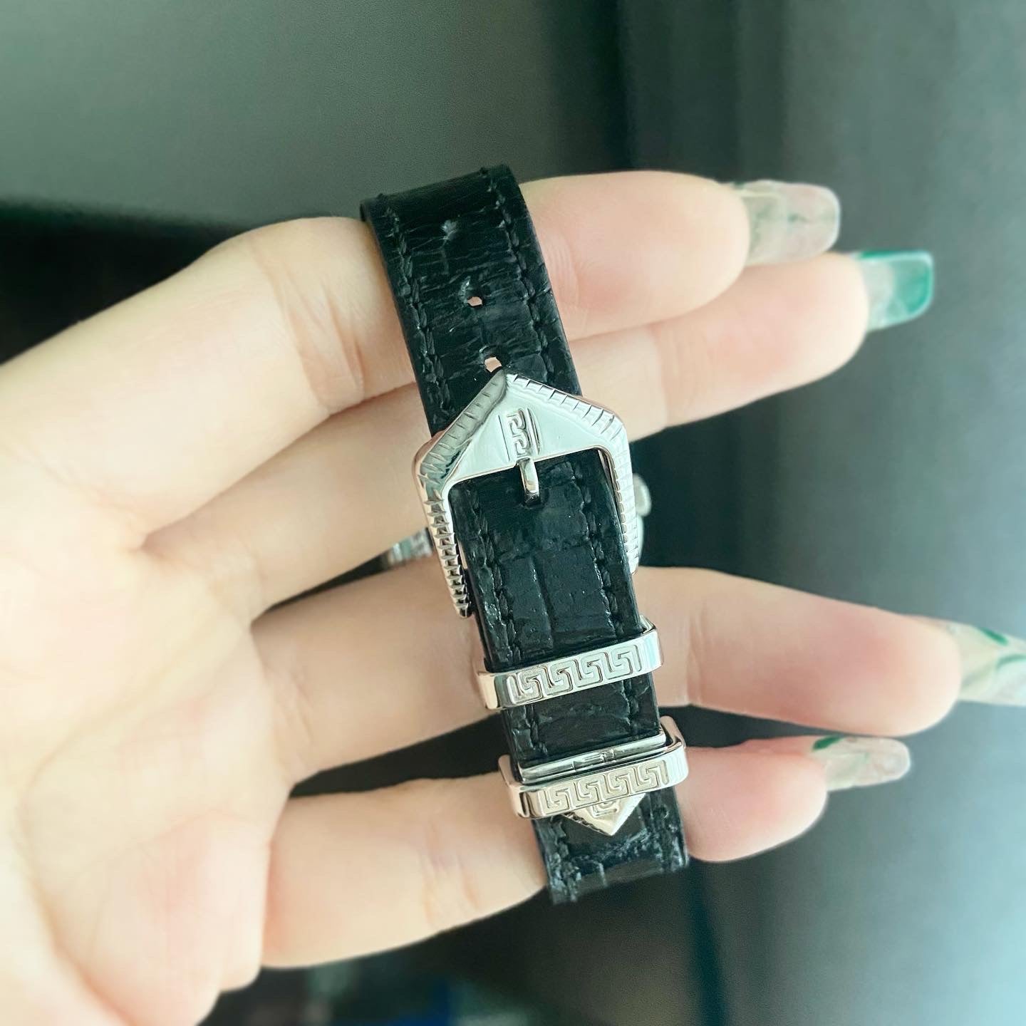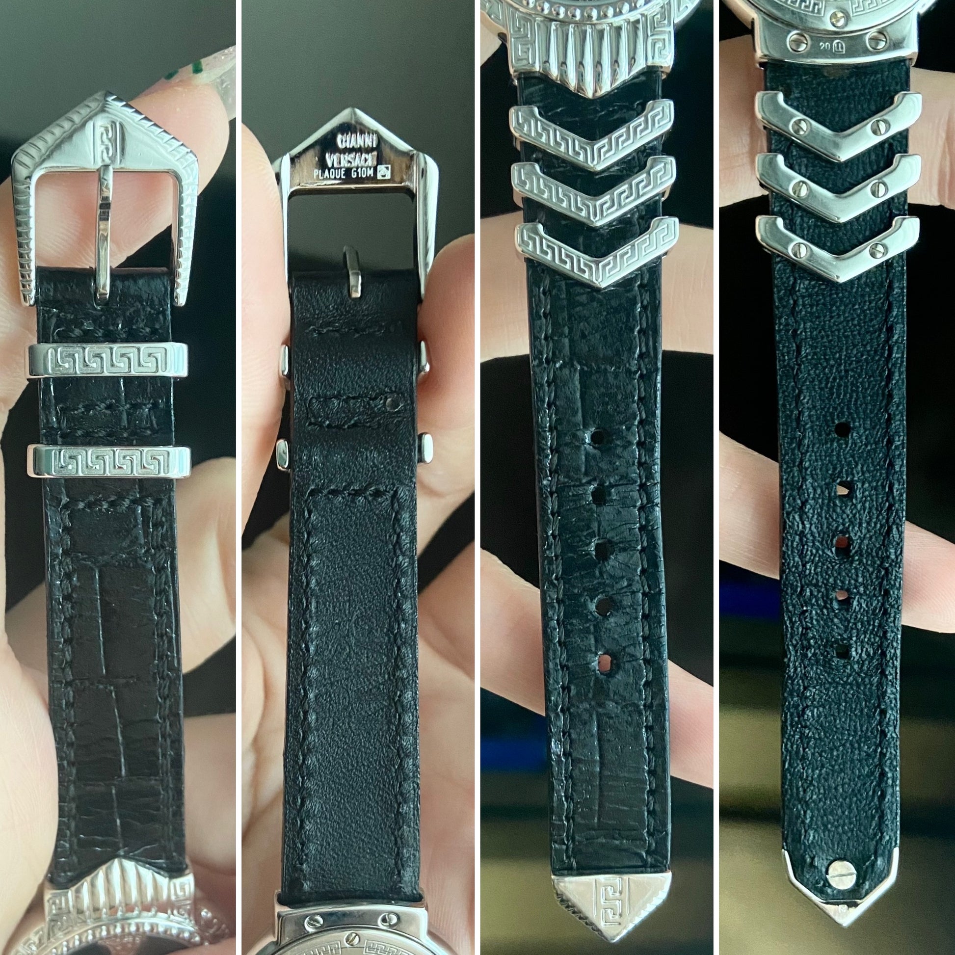 Case: White gold plated 20M case in Versace pattern.