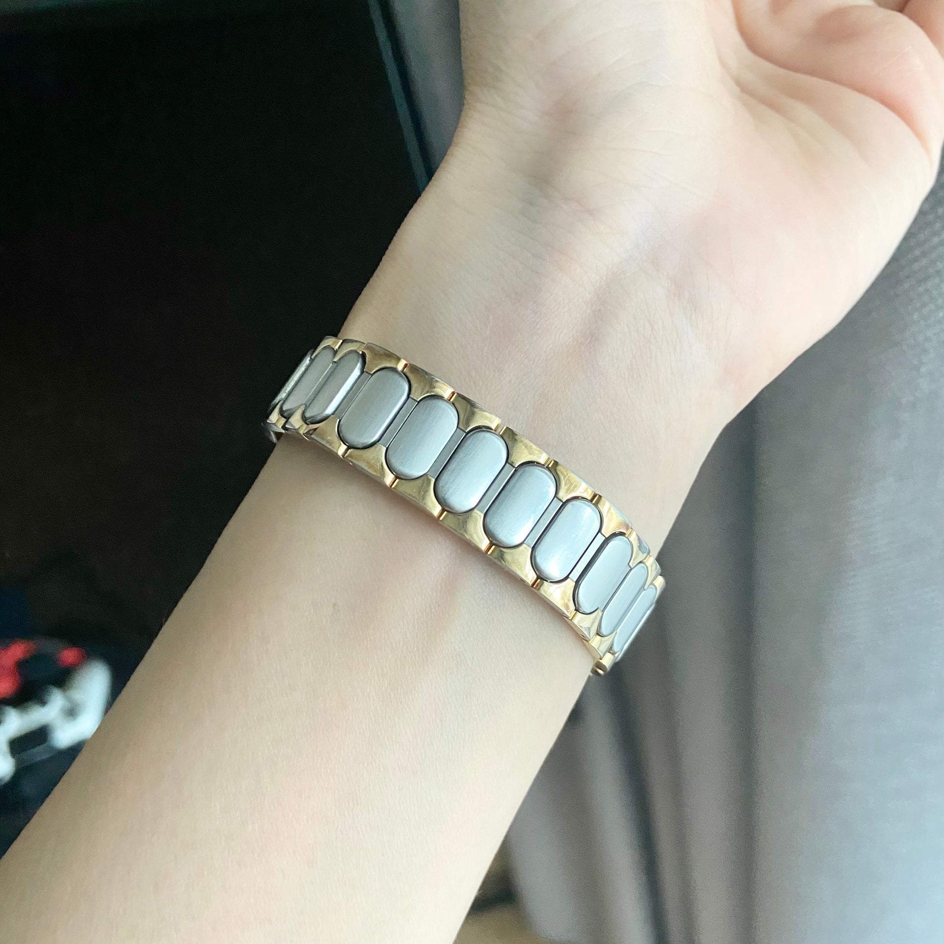 Wrist size: Adjustable fit up to 15.8cm. (links can be removed for a smaller fit).